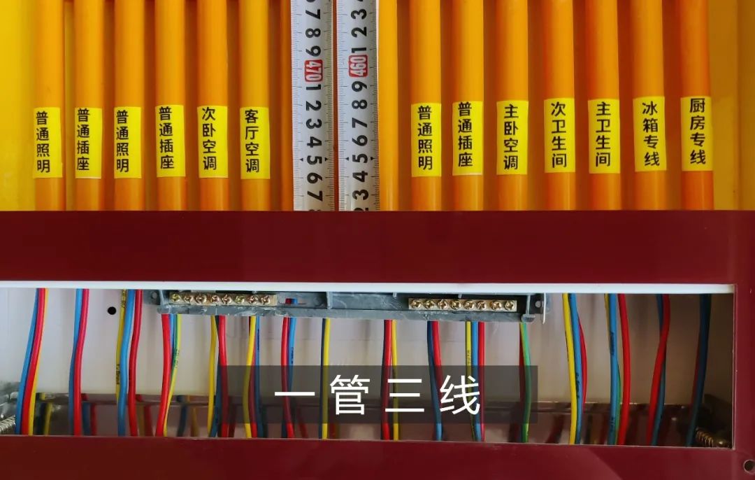 ①、穿线按功能使用负荷需要配置线径大小确定回路,按规定施工,每个回路须按红相、蓝零,双色地的标准穿线。