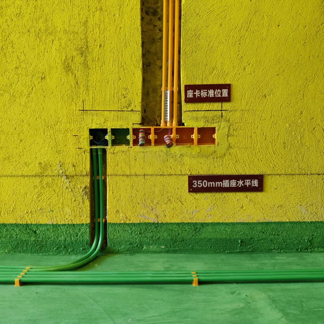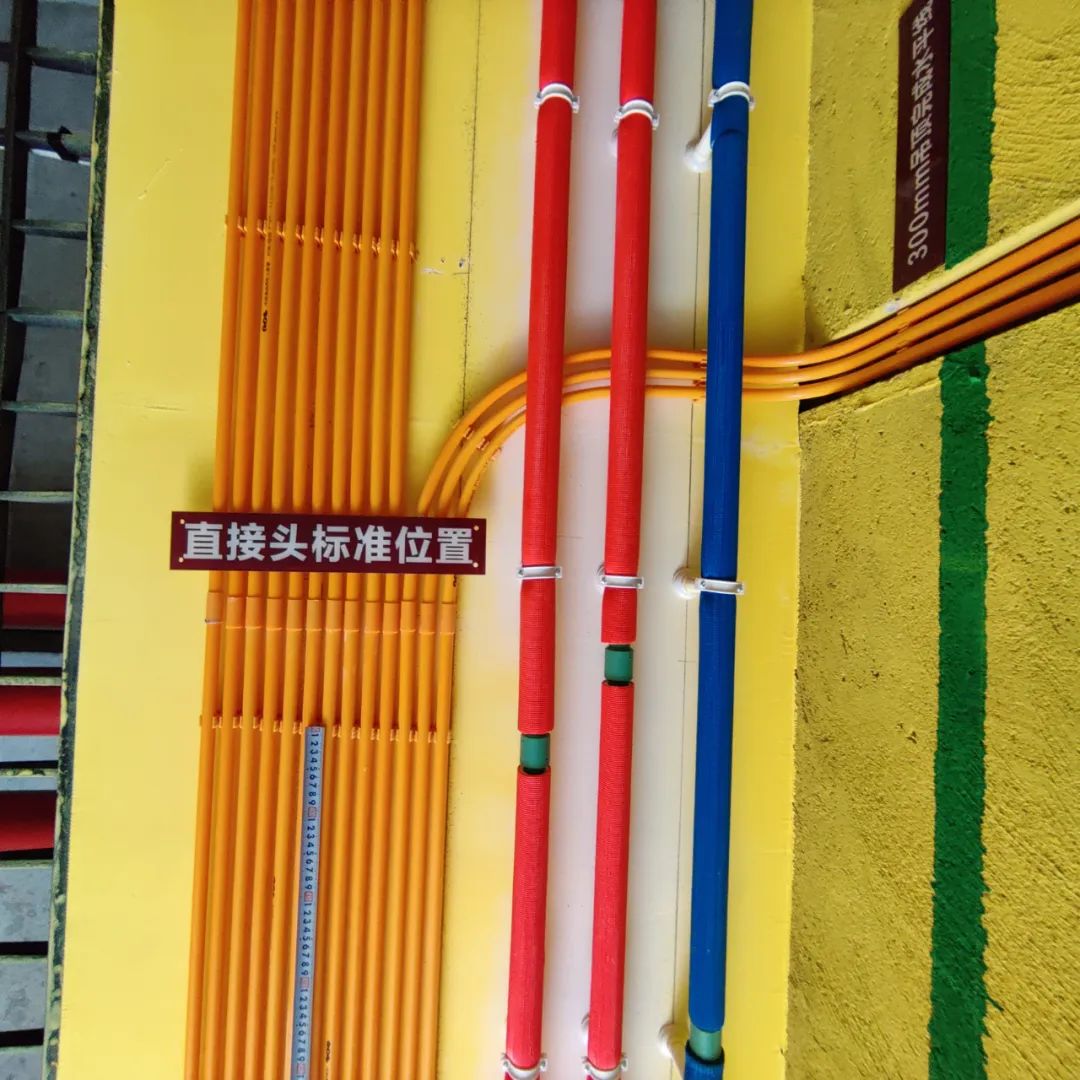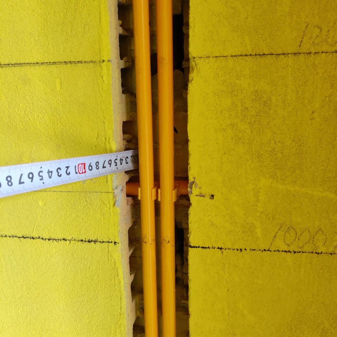 ③、排管规范:排管间距是由线管专用座卡固定自动生成,管距不得大于8mm、小于5mm。排管间距是为后工序贴砖防止空鼓作保障。强、弱电线管交叉处必须用锡箔纸做屏蔽处理,以确保交付后,弱电信号不受强电电磁场干扰。屏蔽范围,线管前后往外延伸不得小于300mm。
