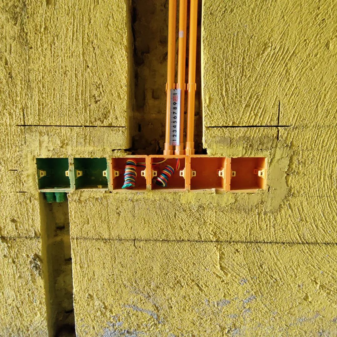 ⑤、所有水电开孔部位使用专用建筑结构发泡胶填充,填实起到隔音、防潮、固定的作用。
