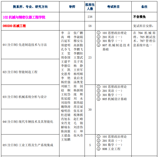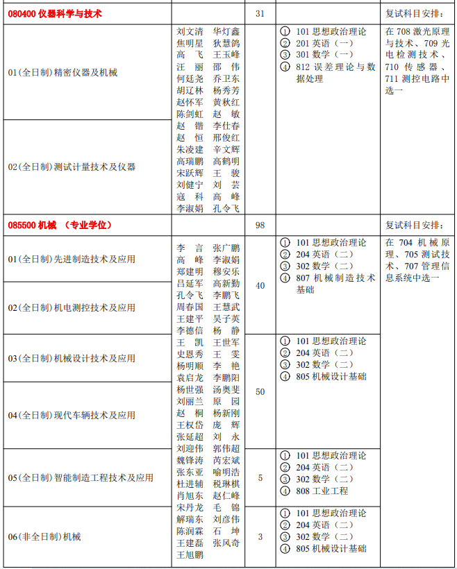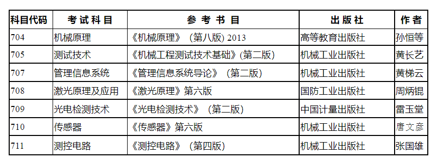 (1)笔试:笔试满分100分,时间为2小时。机仪学院专业课笔试科目如下表所示。