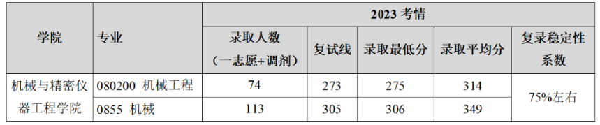 录取稳定性方面,西安理工复试名单没有明确区分各专业,不好直接判断各专业的录取稳定性,我们只能计算个平均值,经过计算平均复录稳定性系数为75%,一般来说复录稳定性系数低于85%就说明进复试容易被刷,不稳定。也就是说西安理工对于初试分数中等同学来说,复试安全性偏低,复试刷人还是比较狠的。复录稳定性系数计算公式:对于上线充足的专业A,假设A专业统考计划录取100人,初试排名前100名最终被录取人数为x,则录取稳定性系数为x/100,如计划录取100人,初试排名前100名进复试只有80人被录取,则复录稳定性系数为80%。对于上国家线线不足的专业B,假设B专业共有100人过线,最终录取y人,则录取稳定性系数为y/100