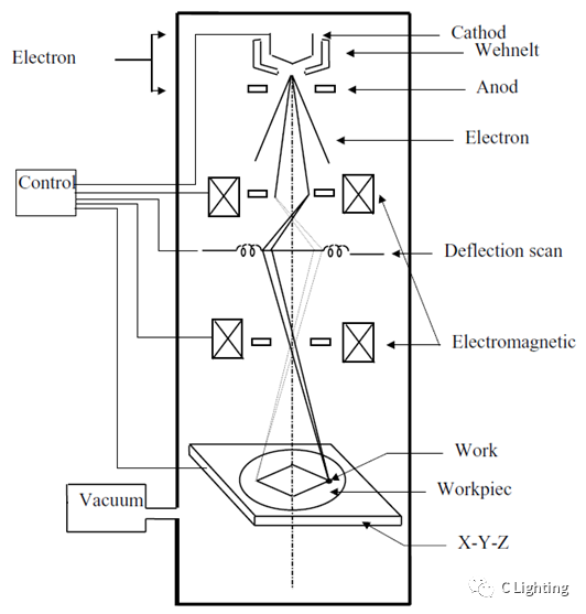 EBL系统是扫描电子显微镜(SEM) 反向工作的结果,即用它来书写而不是读出。因此,其视野和吞吐量受到该工作原理性质的限制。与SEM类似,EBL系统由三个基本部分组成:电子枪、真空系统和控制系统。图1显示了EBL系统的示意图。