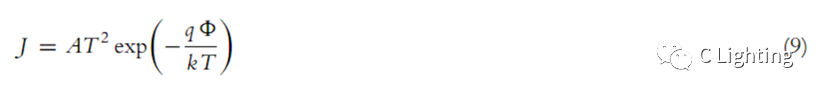 根据量子动力学原理,电子在0◦K时处于基态静止,其能级和能带是明确定义的。随着化合物温度的升高,一些电子获得更多能量并跃迁到更高的能级。因此能带宽度增加。当温度足够高时,电子获得足够的能量来克服天然屏障,即阻止它们逃逸的功函数。特别是,随着温度的升高,金属传导带的上限会模糊并延伸。一些传导电子获得足够的能量来克服金属表面的势垒。然后,这些电子可以通过施加适当的电场被吸引出来。如果电场足够高,能够从功函数为ɸ的阴极中吸取所有可用的电子,则在温度 T 下获得的饱和电流密度 J (由著名的Richardson-Dushman定律给出),其中A是由材料决定的常数,k是玻尔兹曼常数。