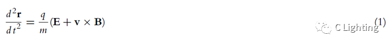 其中,q是电子的电荷,m是电子的质量,r是电子相对于任意原点的位置矢量。E和B分别表示电场和磁场。v是电子在磁场中的运动速度。