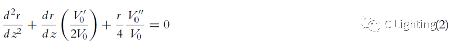 考虑到电子束发生镜筒的轴对称场系统,电子束通过轴线附近的一个公共点时,可以通过一个相对有限的场的变化区域使电子束通过另一个公共点。类比于光光学,将第一个公共点称为物,第二个公共点称为像,将场的区域称为电子透镜。电子透镜的属性和参数可由以下准轴心射线方程推导得出:
