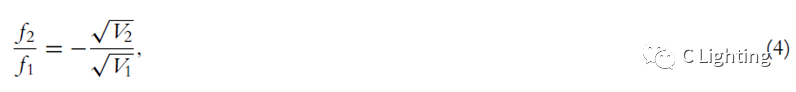 两个焦距之间的关系与光学中的关系类似,其中相当于光学折射率Ni。