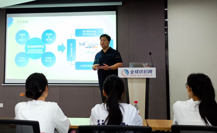 暑期社会实践的第一站是中国轻纺城的网上交易中心。历经10多年,网上交易中心精心打造了专业交易平台——“全球纺织网”,致力于为中国乃至全球的纺织企业提供最有价值的专业资讯服务,推动纺织外贸的发展。通过交流沟通以及试用“有布”APP后,同学们深切了解了公司对于中国轻纺城数字化转型所做出的努力和为柯桥纺织集群的企业和商户数字赋能的决心。公司开发了“网上轻纺城”和“金蚕宝宝”等小程序,方便企业把握更多的商机和实施数字化管理,更高效地进行供应链管理。公司还利用“渔舟运营支撑平台”做好数字挖掘,向平台供应商、采购商开启个性化精准推送,持续激发采供活跃度,做好数字产业链路配套,服务纺织产业集群的数字化升级。