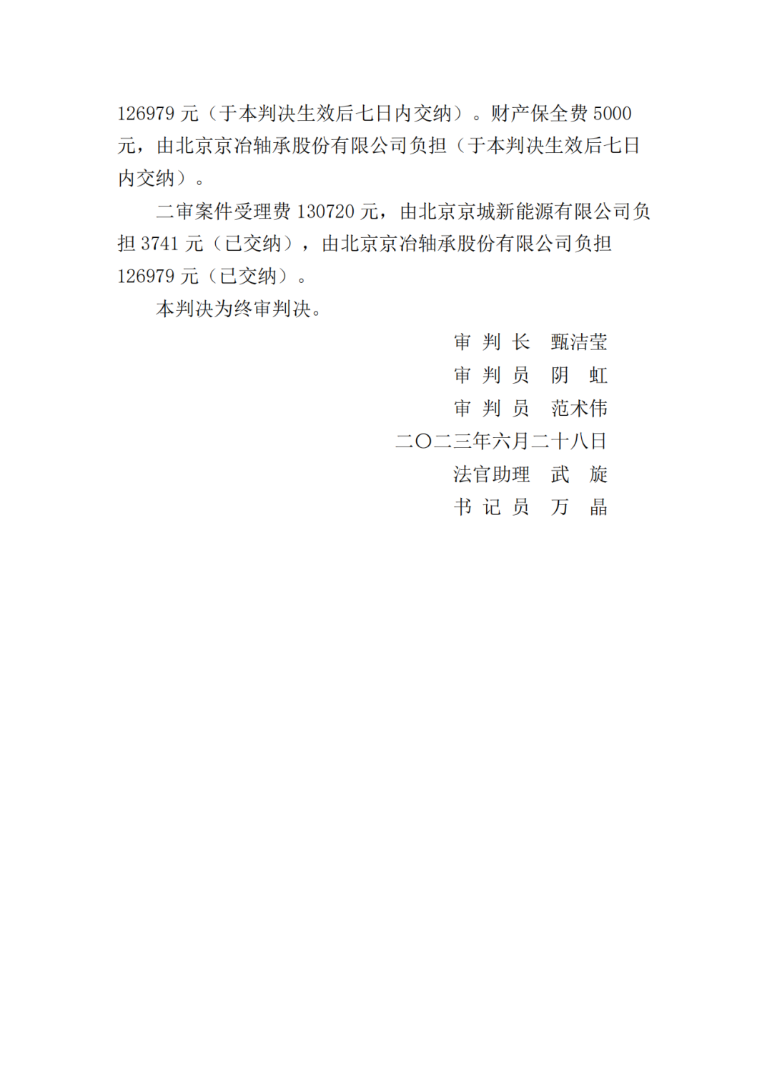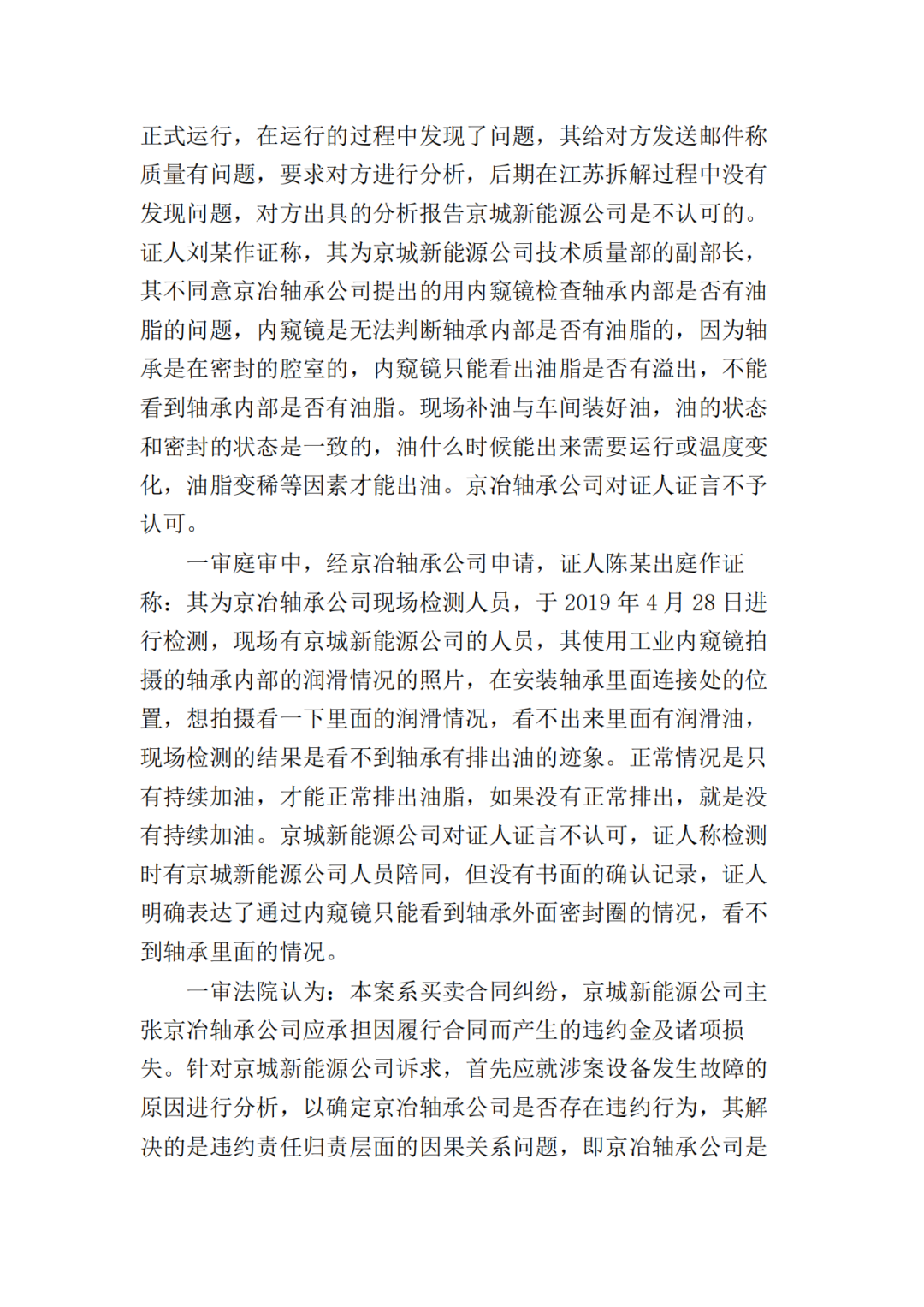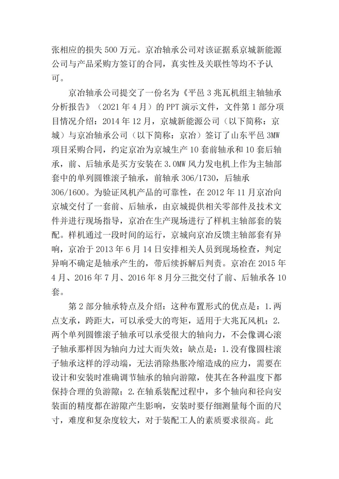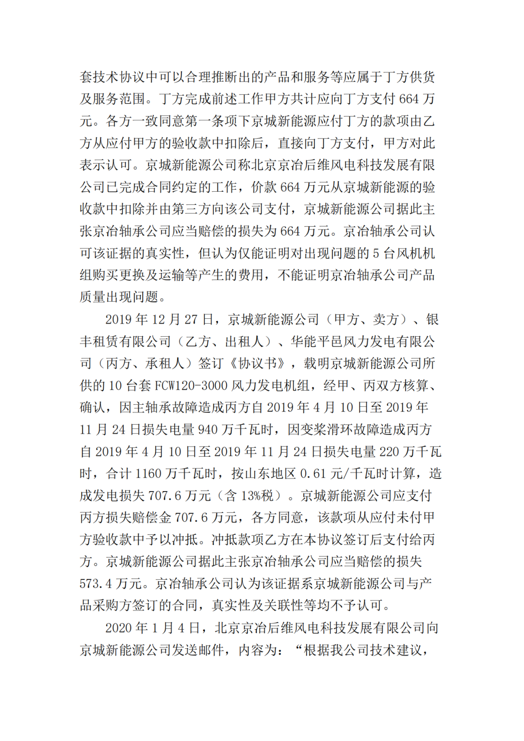 二、北京京冶轴承股份有限公司于本判决生效之日起十日内赔偿北京京城新能源有限公司损失共计17374000元;