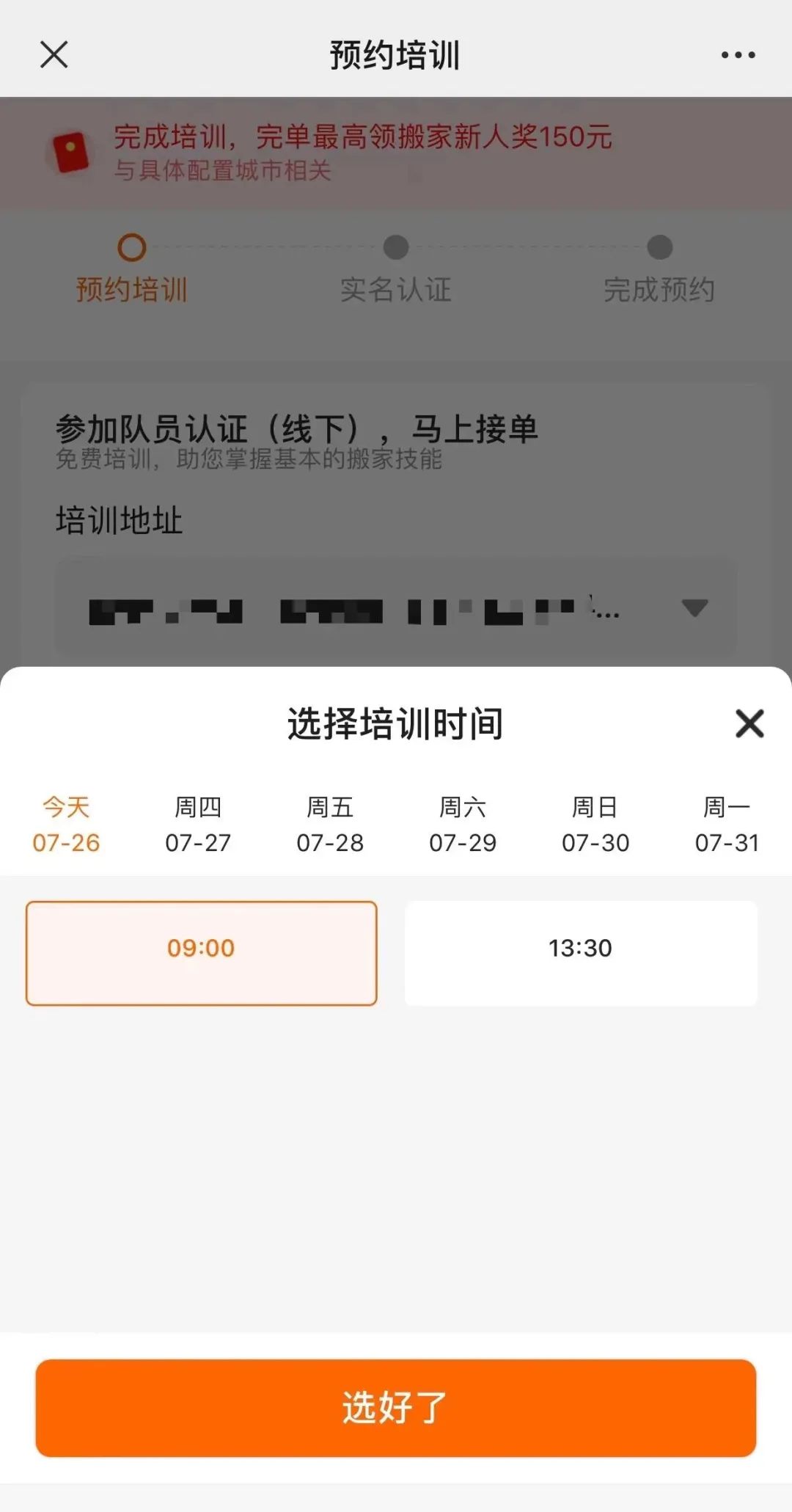 扫码报名-完成线下培训认证后(15-30分钟)-当天即可接单