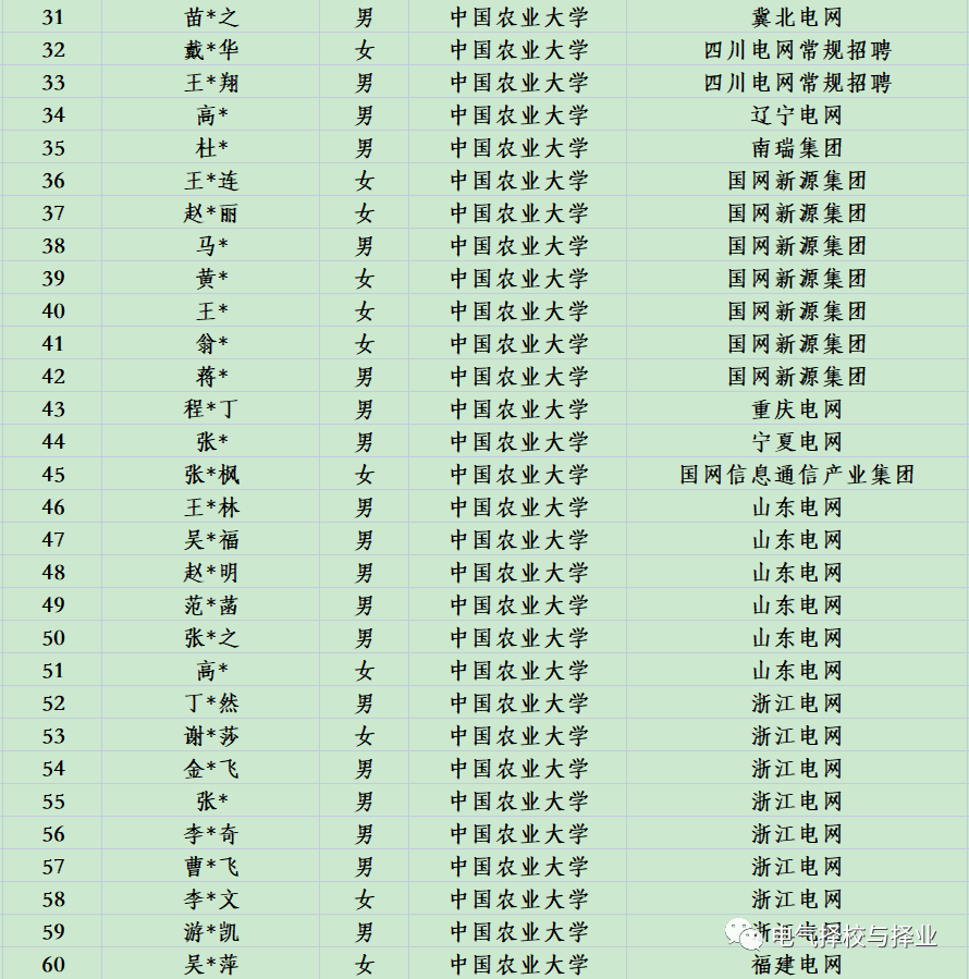2023年中国农大入职国网名单