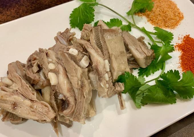 做法单一粗暴,只使用水,食盐、花椒和生姜三种配料进行熬制。