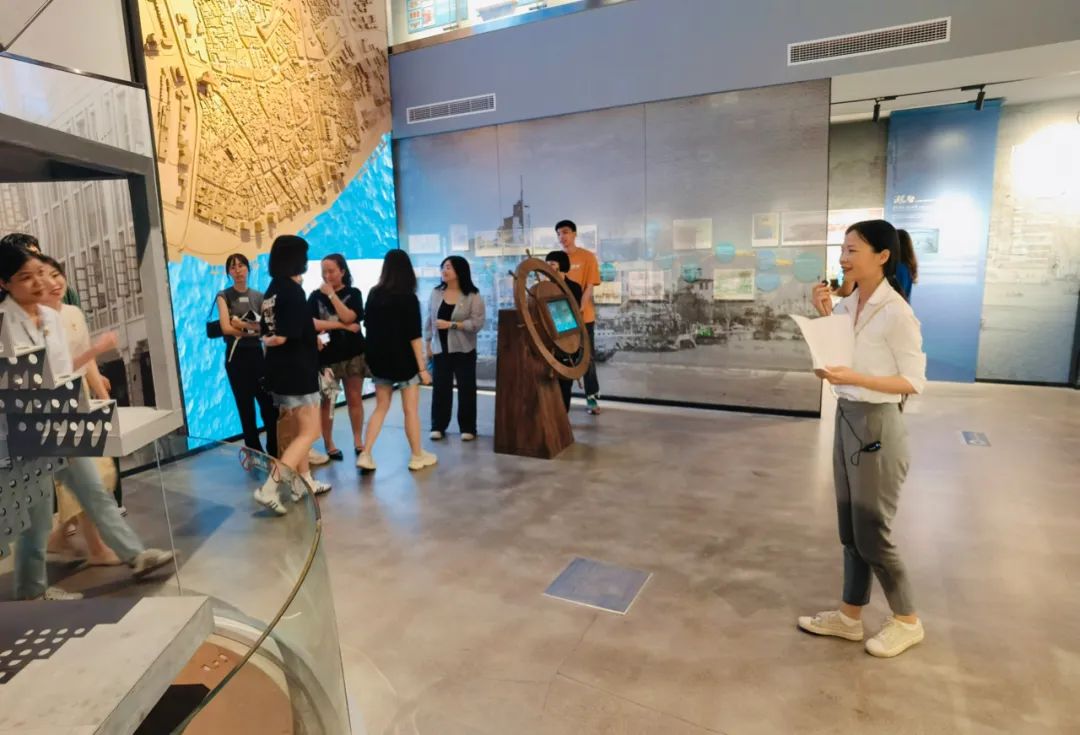 青年们紧紧跟随讲解员的步伐,穿过人文之光,看到“骑楼大观 时空之塔”;走过历史走廊,感受厦门从1394年明洪武年至今的传承与发展。