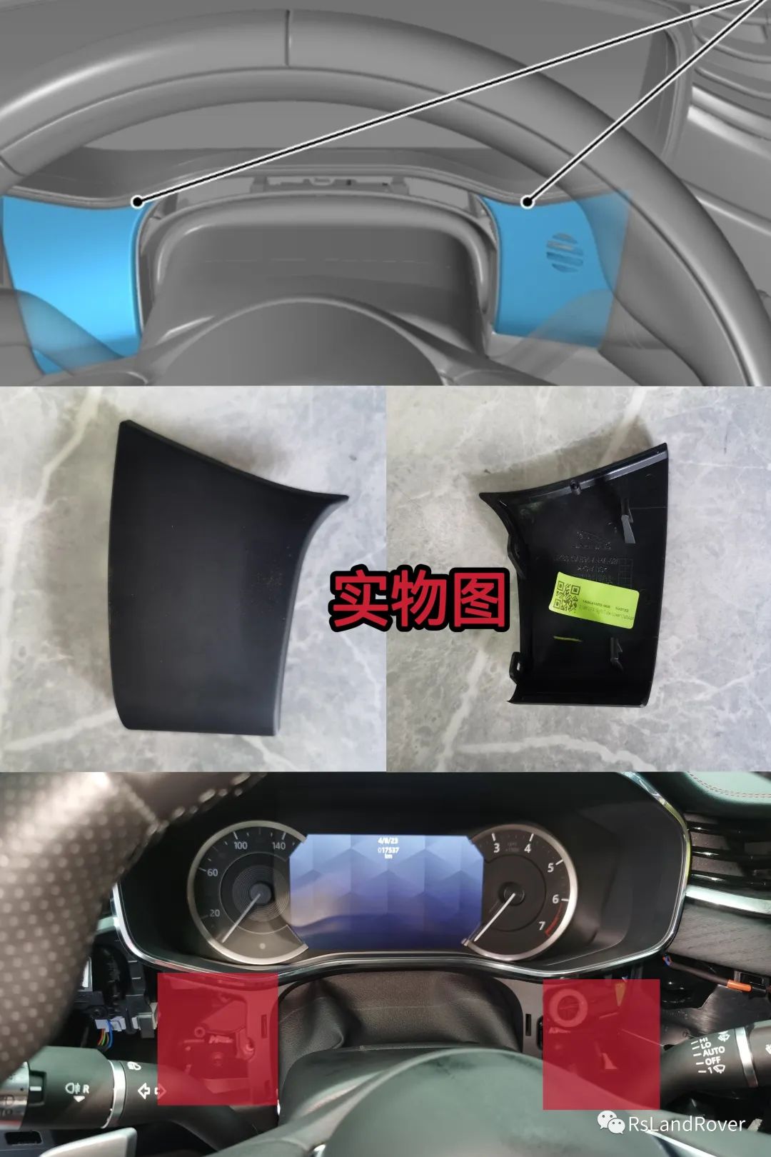 2:拆卸方向盘左右两侧饰板,均卡扣,无螺丝