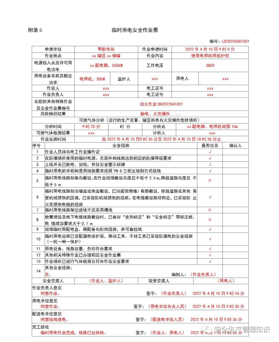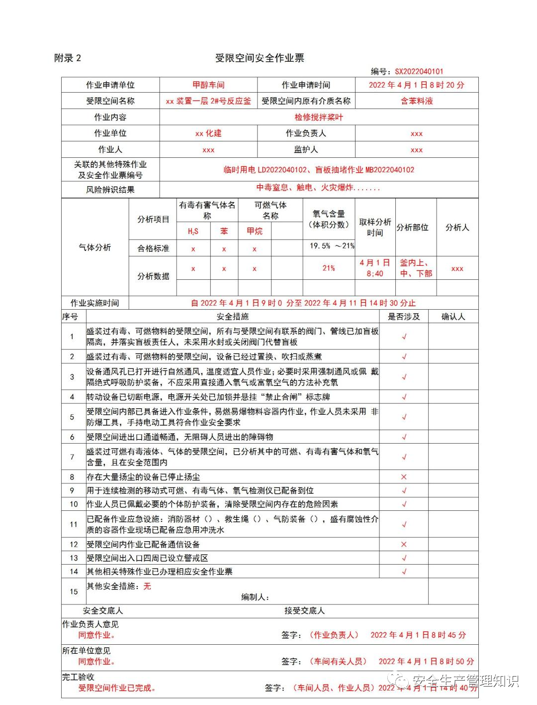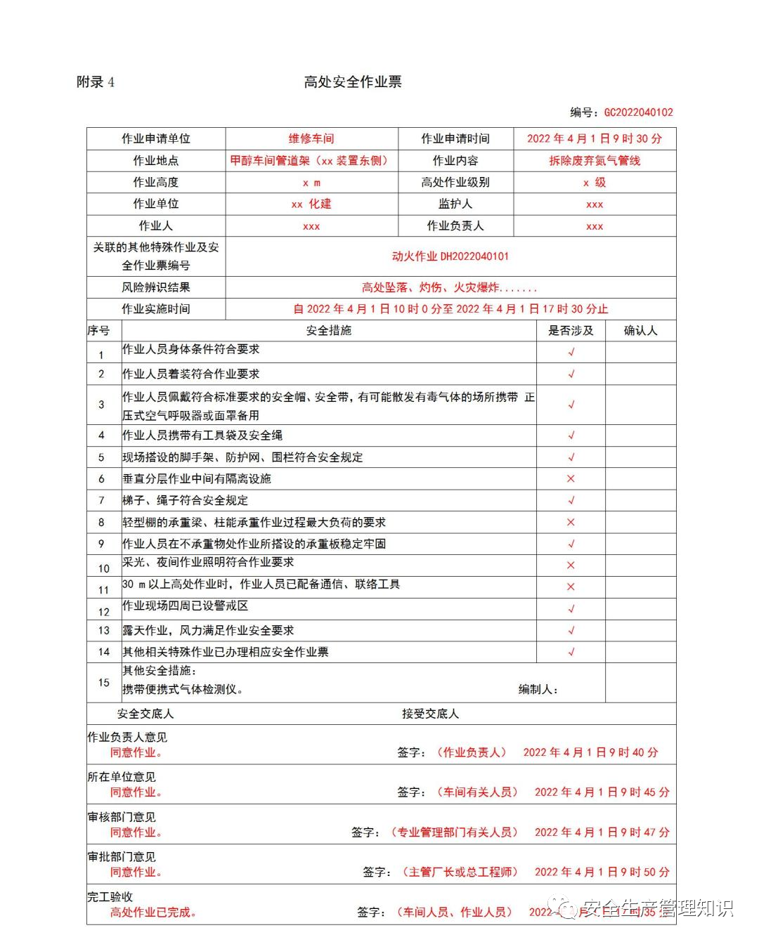 应急厅关于印发《危险化学品企业特殊作业票证填写注意事项》的通知