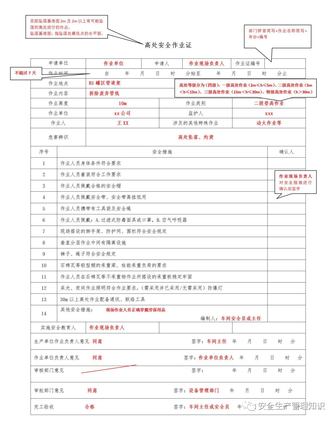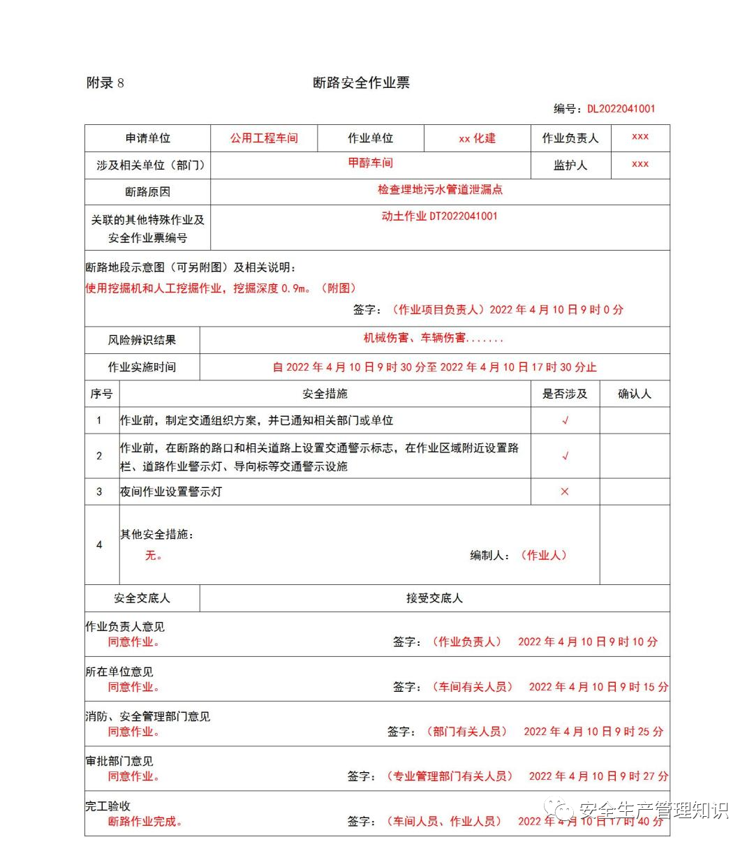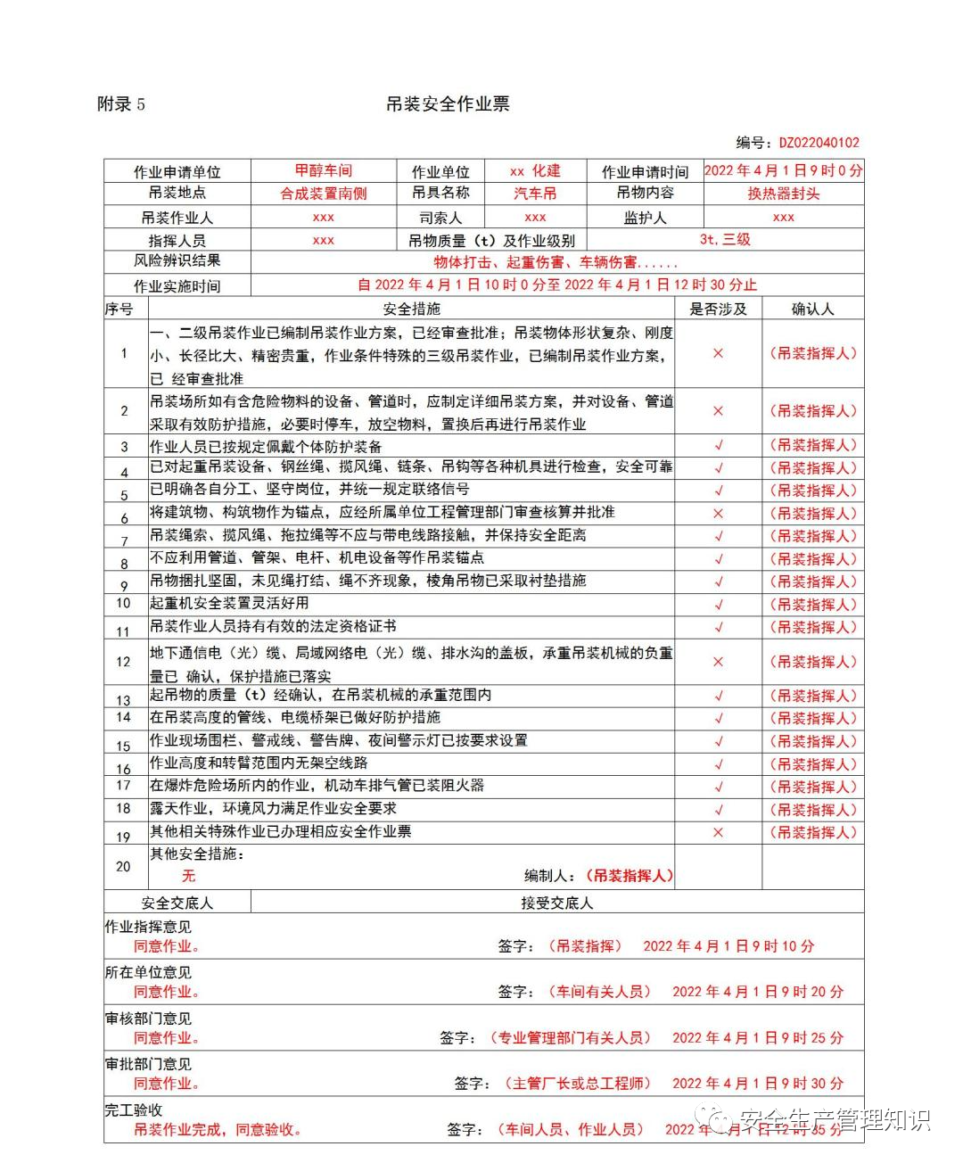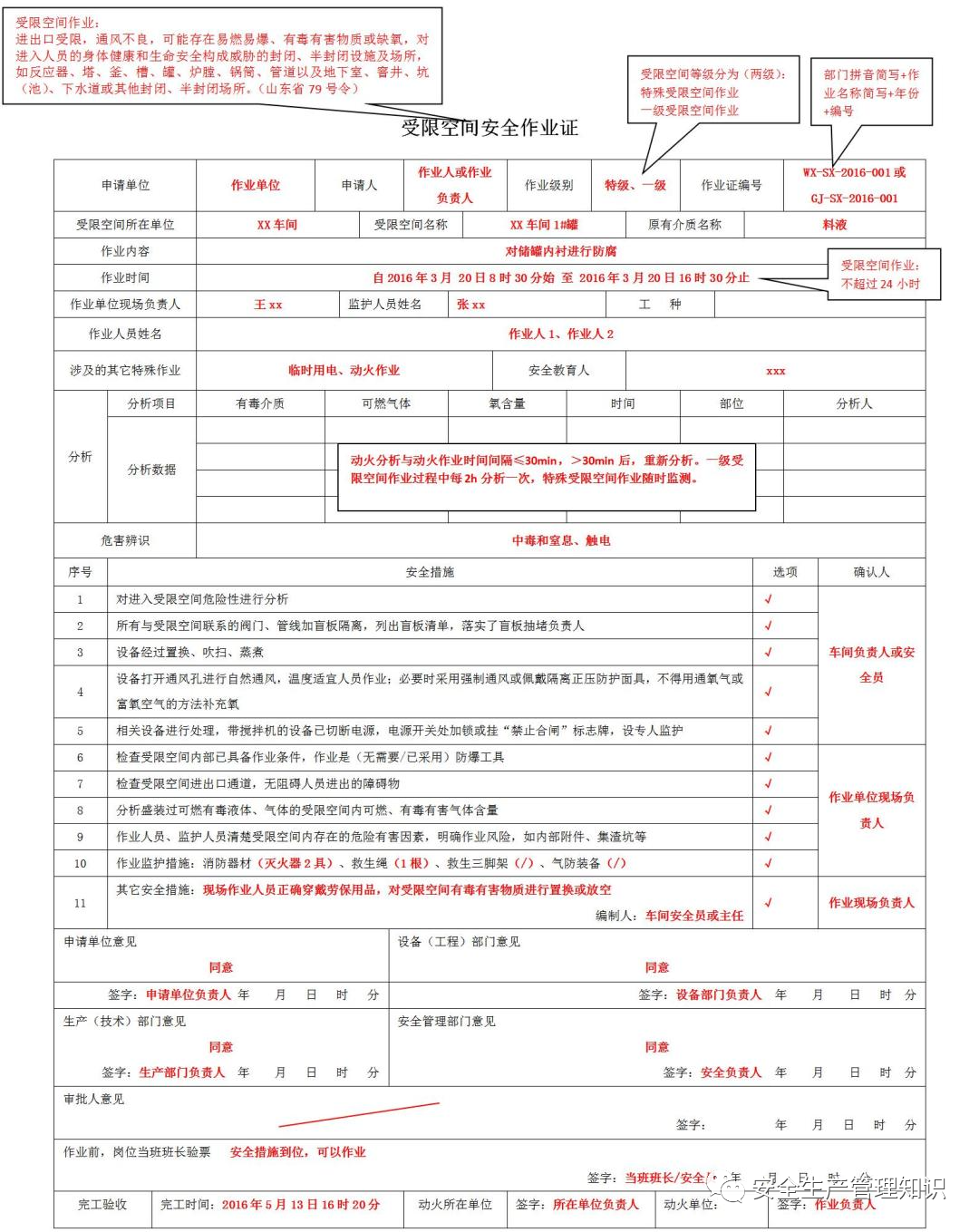 应急厅关于印发《危险化学品企业特殊作业票证填写注意事项》的通知