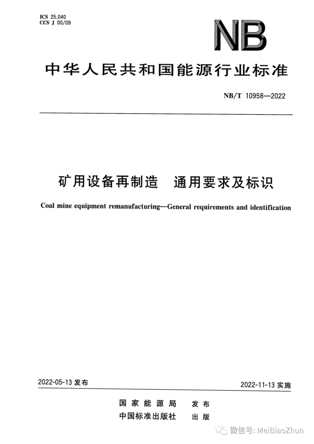 NB∕T 10958-2022 矿用设备再制造 通用要求及标识