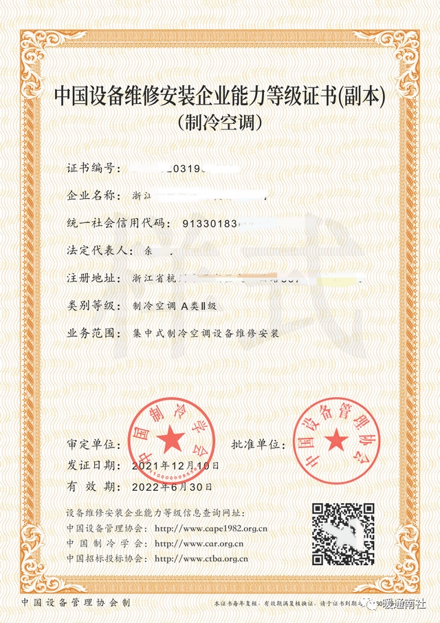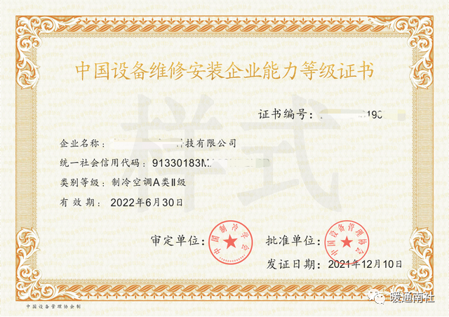 中国设备维修安装企业能力等级证书(制冷空调),是由中国制冷学会审定,中国设备管理协会批准颁发,全国性制冷空调设备维修、安装行业能力等级证书。也是目前国内唯一能在中国招标网http://www.ctba.org.cn/查询到的制冷空调类维修、安装企业能力等级水平证明。报审的资料汇集内容如下: