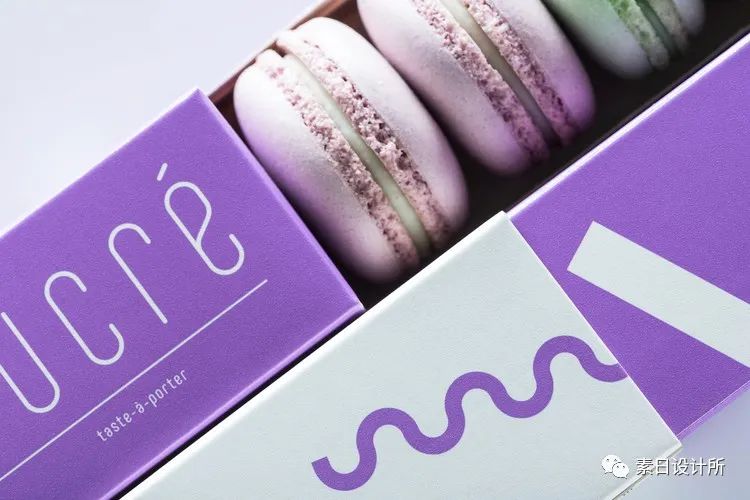 -SUCRÉ 苏克雷马卡龙-口味有香槟、红糖、坚果,薰衣草,薄荷清凉,甘甜味。一个双层包装的设计方案,磨砂质感,硫酸纸开窗既看起来像两层衣服的创意视角,又完美的展示了马卡龙。