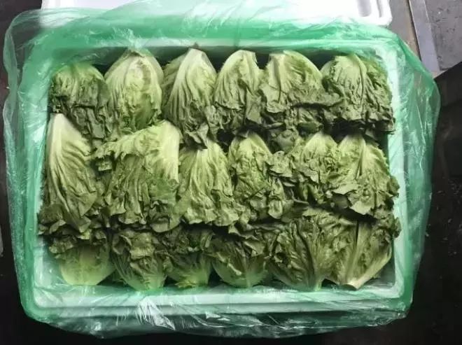 泡沫箱包装,里边还放置了冰瓶,像大部分外地来广东的精品叶菜(菜心、芥兰、大利、油麦等),这就是包装起到的另外一个重要作用,就是保温。一个泡沫箱再加上冰瓶等物料,成本就差不多十块八块了。包装既然是包装又是保鲜,能够保证产品的新鲜度和品质,已经成为当下蔬菜行业发展的一个趋势,未来将会有更多产品采用这样的保鲜包装。
