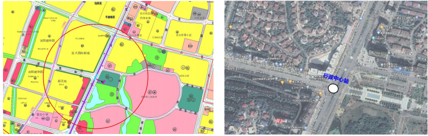 行政中心站位于浏阳大道与碧桂园路的十字交叉口。