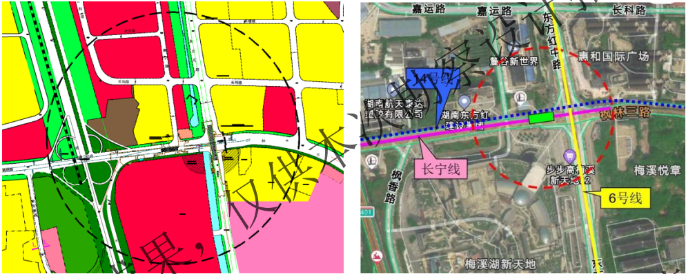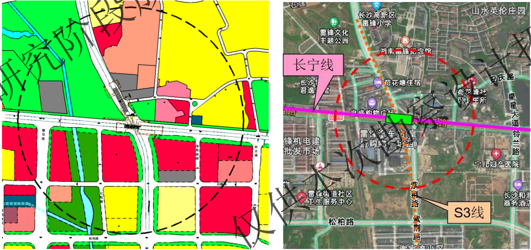 雷锋镇站位于湘江新区枫林三路与雷高路、紫荆路交汇路口处,车站主体沿枫林三路呈东西向布置。