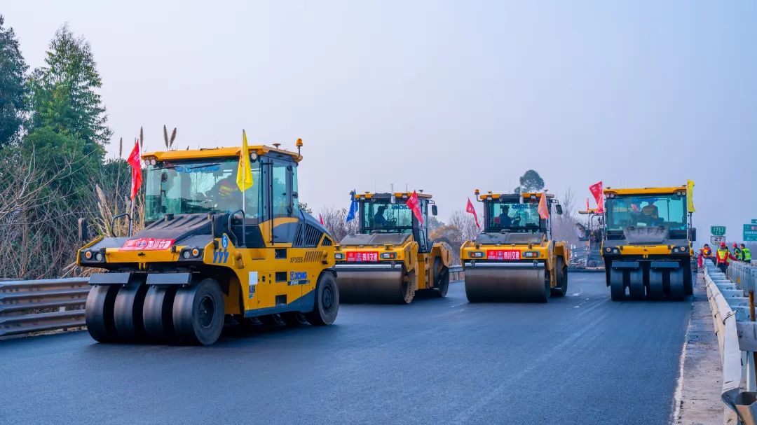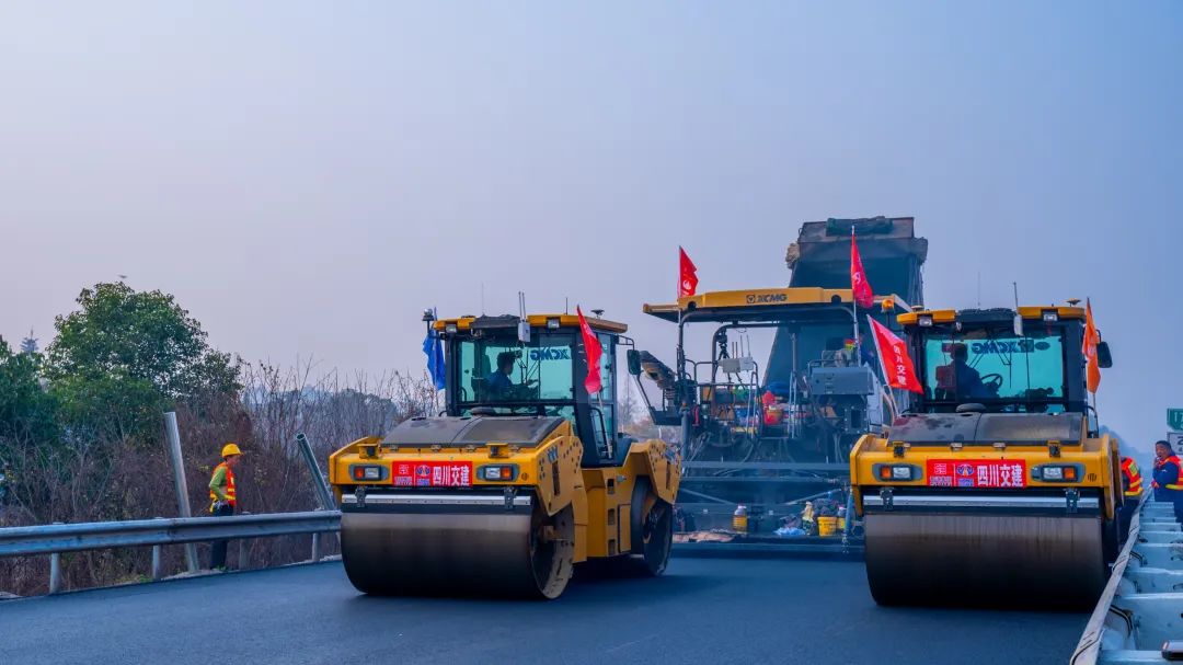 成绵高速也是去往成都的一条重点省级交通干线。今年3月,成绵高速全线路域环境整治提升工程圆满完成,仅用18天时间就顺利恢复通车,在当时备受媒体关注。徐工油面设备RP1855T摊铺机、XD133S双钢轮压路机及XP305S胶轮压路机在此次高速沥青路面的罩面施工中也大展拳脚。