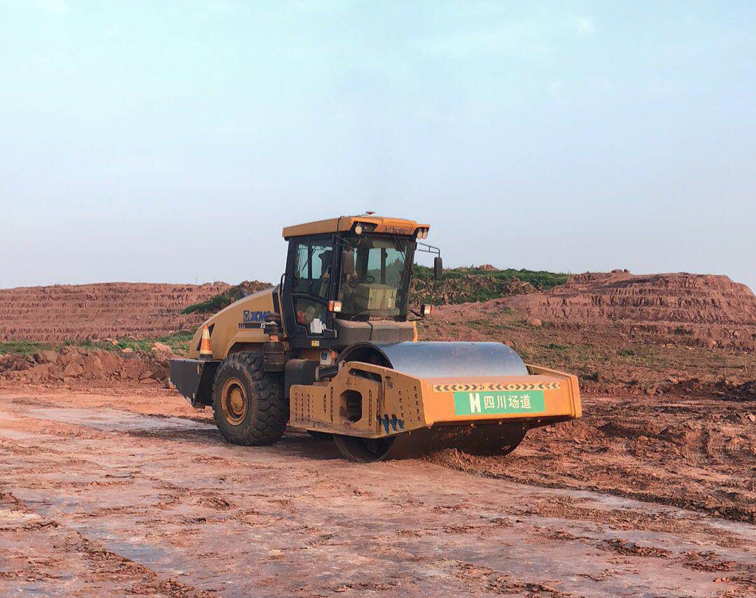 如徐工XS365单钢轮振动压路机就参与过机场的道路压实工作。机场的开荒作业并非一件易事,XS365表现出超强的动力性能以及工况适应性。经过特别硬化处理的高强度耐磨钢轮,使XS365能在各类极限工况中依然运转自如,是当之无愧的徐工压路机界重载明星。