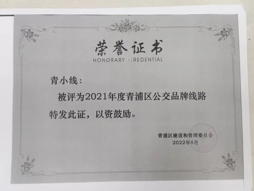 青小线2012年、2013年、2015年、2018年获评青浦区公交品牌线路,2016年获评青浦区三星级品牌线路,2019年、2021年、2022年被评为青浦区五星级品牌线路。