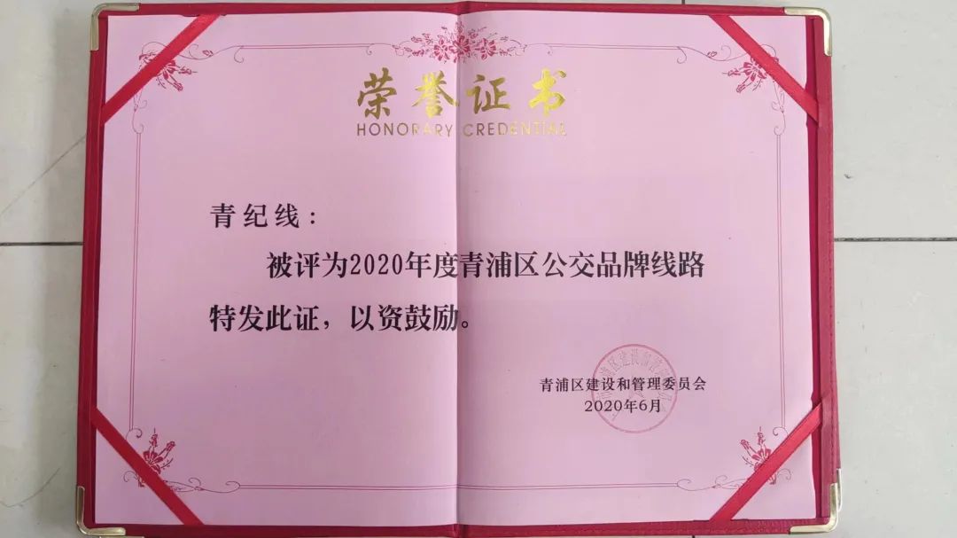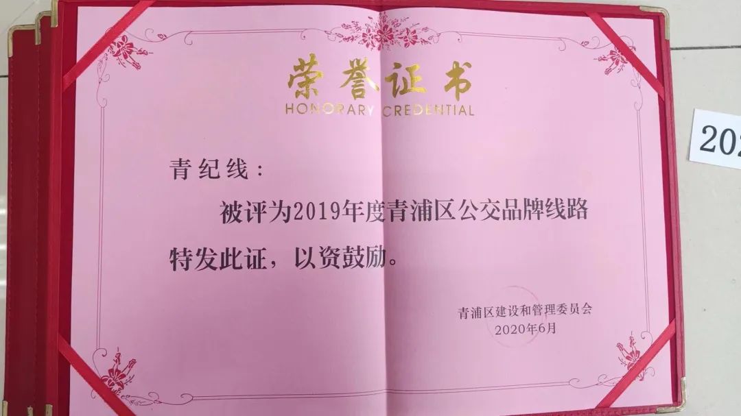 近年来,青纪线先后获评青浦区工人先锋号、青浦区公交品牌线路称号,2019-2022年连续四年被评为青浦区五星级品牌线路。