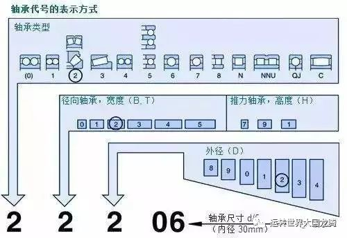 基本代号为22206是代表一个球面滚子轴承,宽度系列为2,外径系列也是2,内径为30mm。