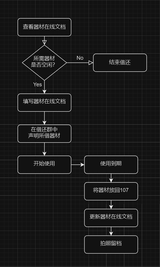 下面画了一个简单的流程图来写清楚器材借还的全流程: