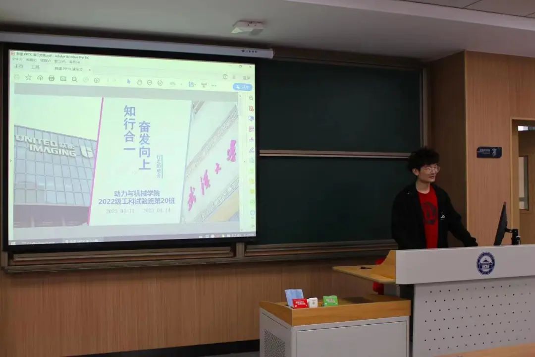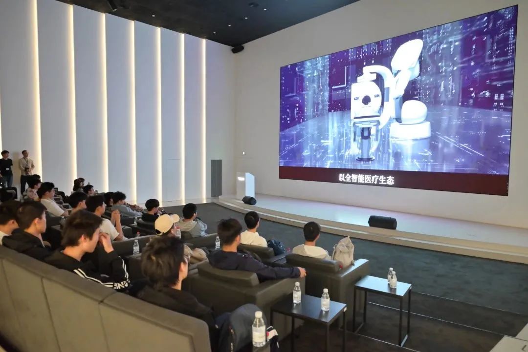 参观完大厅,同学们移步报告厅,观看了联影的宣传视频,深入了解联影的发展历程、取得的成就和当今高端医疗设备仪器的发展水平及市场现状,备受鼓舞,为中国企业自立自强感到骄傲和自豪。特别是了解到在疫情期间,联影积极生产医疗设备,援助全国各地的重灾区,同学们感受到民族企业的担当,也意识到当前所学应当与国家命运相连,随时响应国家号召,始终把知识运用到国家和人民需要的地方。随后,两位联影的高级研发工程师,包括一位校友,结合自身亲身经历,分享了从机械工程展望科技发展的认识,介绍了专业特点和广阔前景,从生涯发展、职业选择上对同学们进行了指导,勉励叮嘱同学们努力学习知识、踏实钻研,以习近平总书记在科学家座谈会时提出的四个面向为己任,将自身的发展与祖国的科技自立自强相融合。