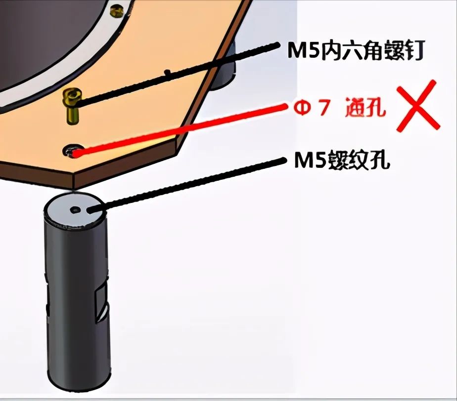 装配时需要二次加工扩螺纹孔并更换螺钉