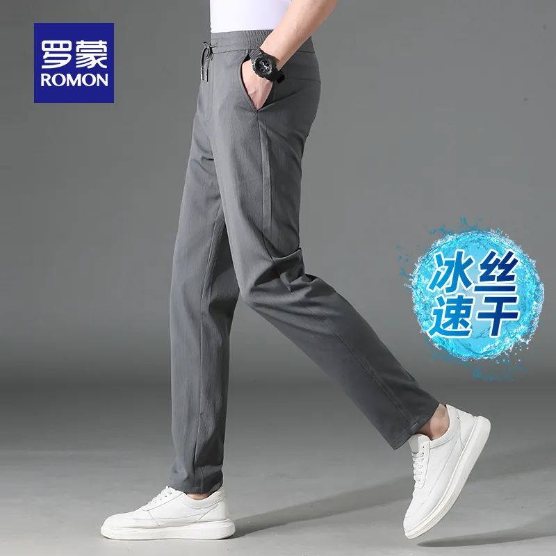 (广告) 【冰丝速干】罗蒙休闲裤男夏季薄款弹力修身中青年运动休闲裤子男
