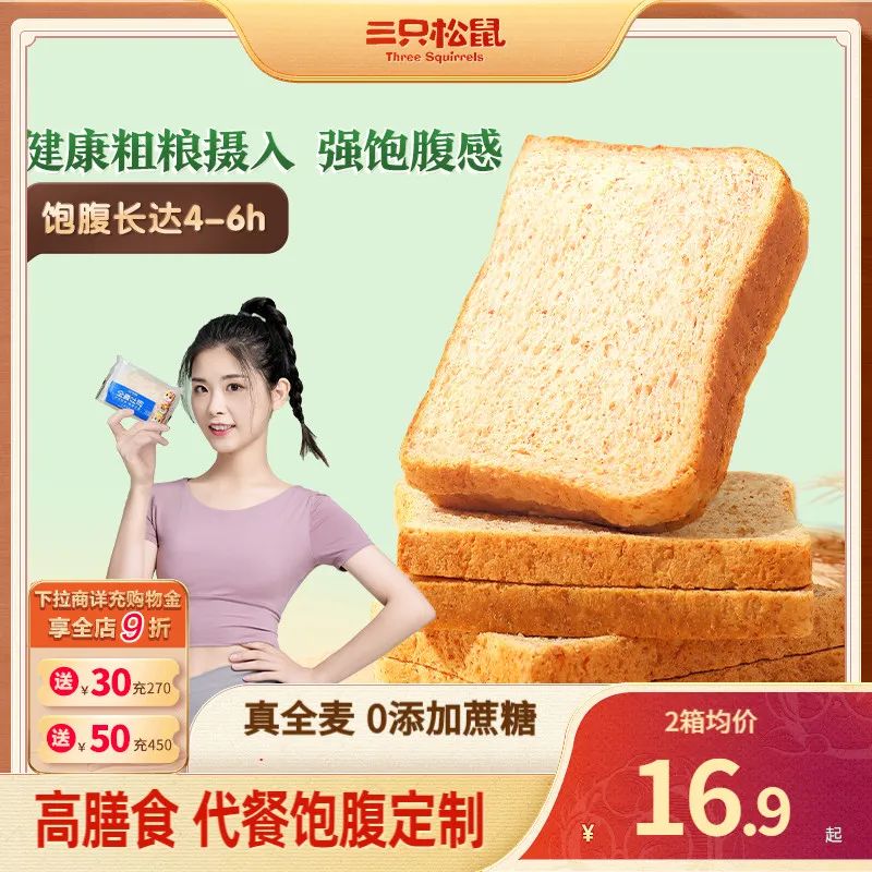 (广告) 【三只松鼠_黑麦吐司1000g】全麦面包
