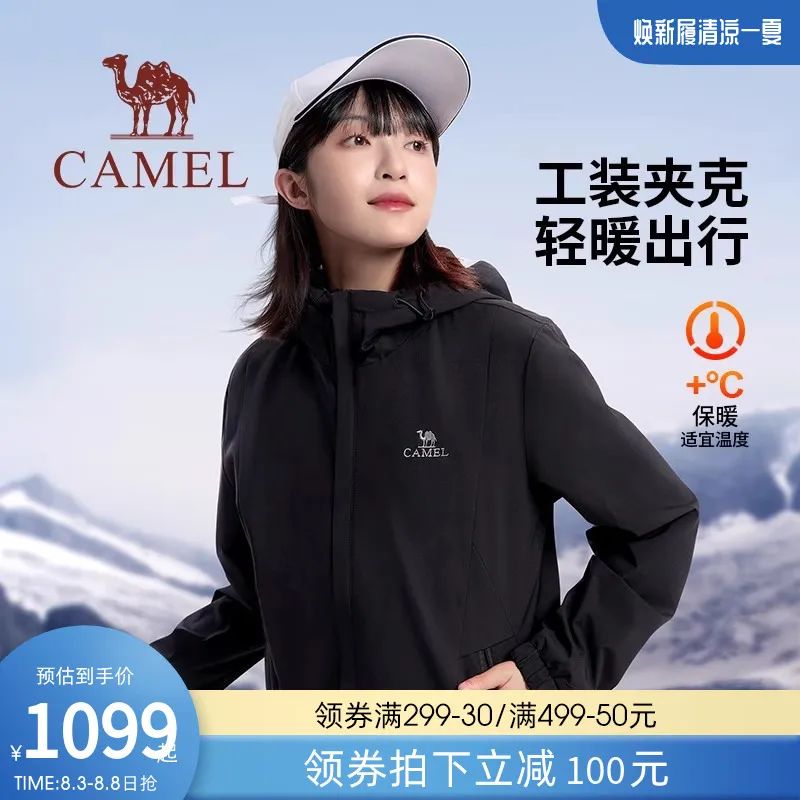 (广告) 骆驼女装工装风2023秋季外套女薄款百搭连帽防水运动户外登山服D