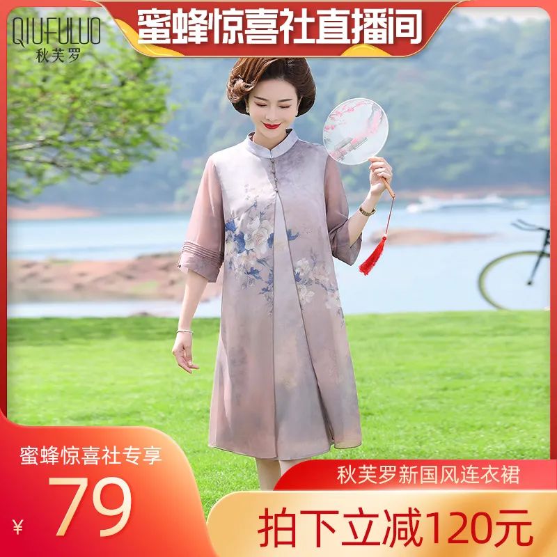 (广告) 【蜜蜂惊喜社】秋芙罗 中年妈妈中国风雪纺连衣裙