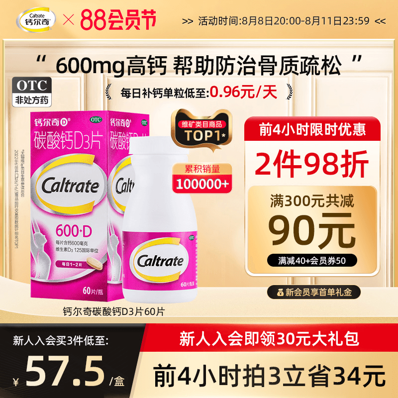 (广告) 钙尔奇钙片60片*3中老年碳酸钙