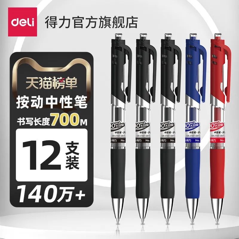 (广告) 得力按动0.5子弹头办公定制中性笔