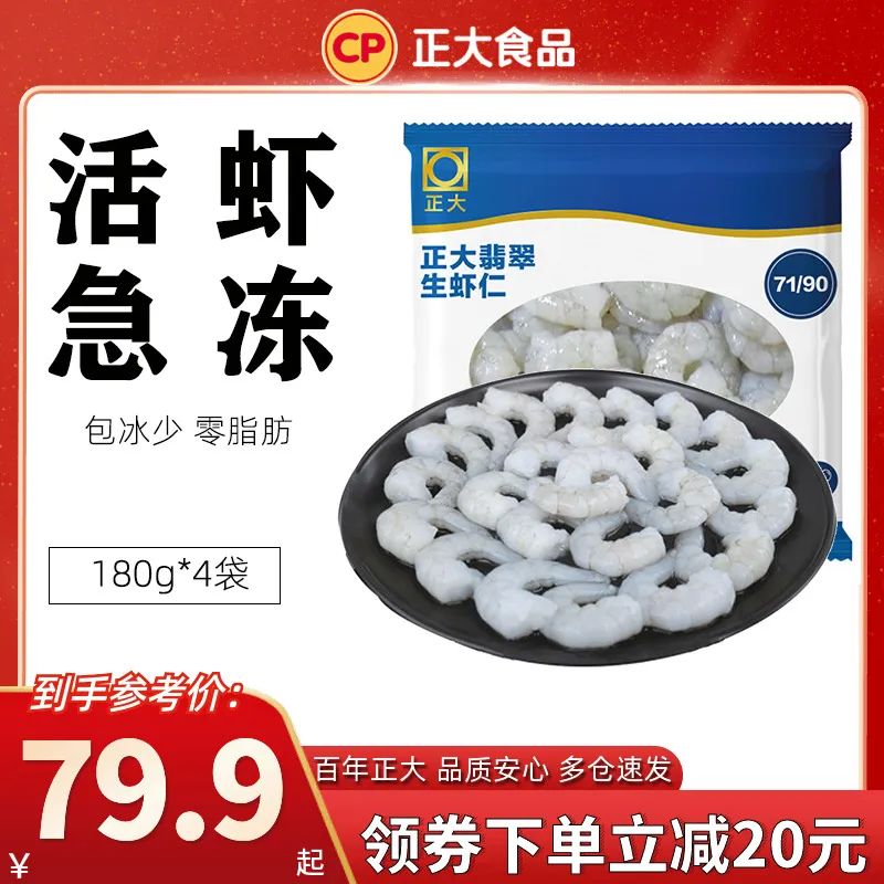 (广告) 正大71/90大号翡翠生虾仁180g*4袋鲜冻新鲜速冻冷冻海鲜水产生鲜
