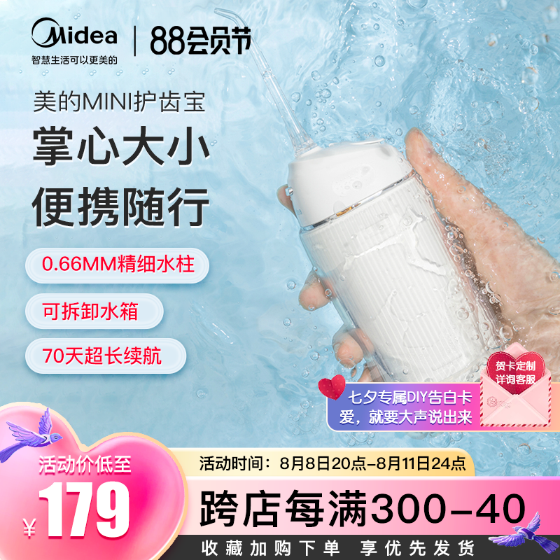 (广告) 七夕送礼好物美的mini冲牙器水牙线便捷口腔冲洗70天长续航+3喷嘴