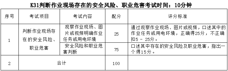 判断作业现场存在的安全风险、职业危害(简称K31);