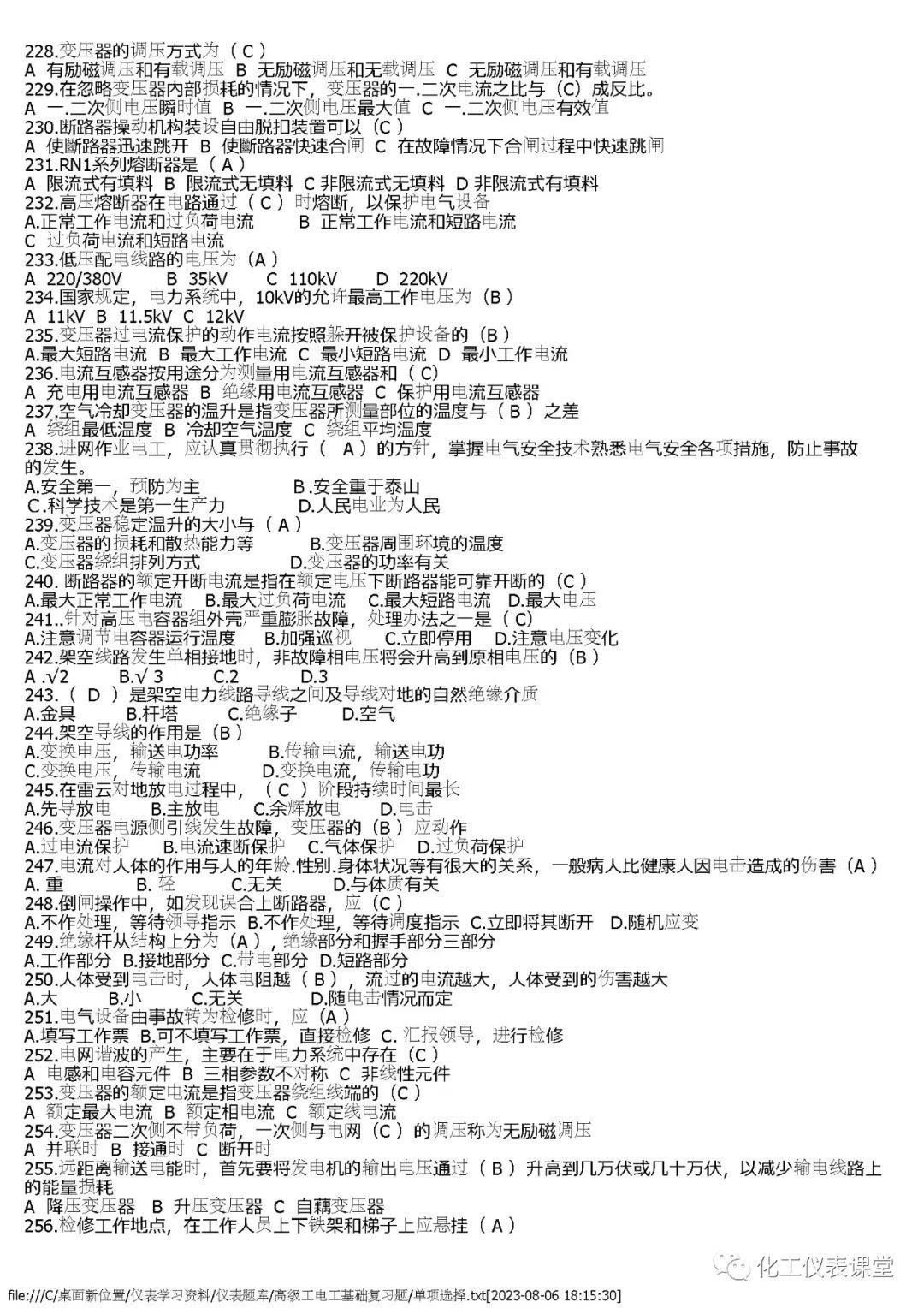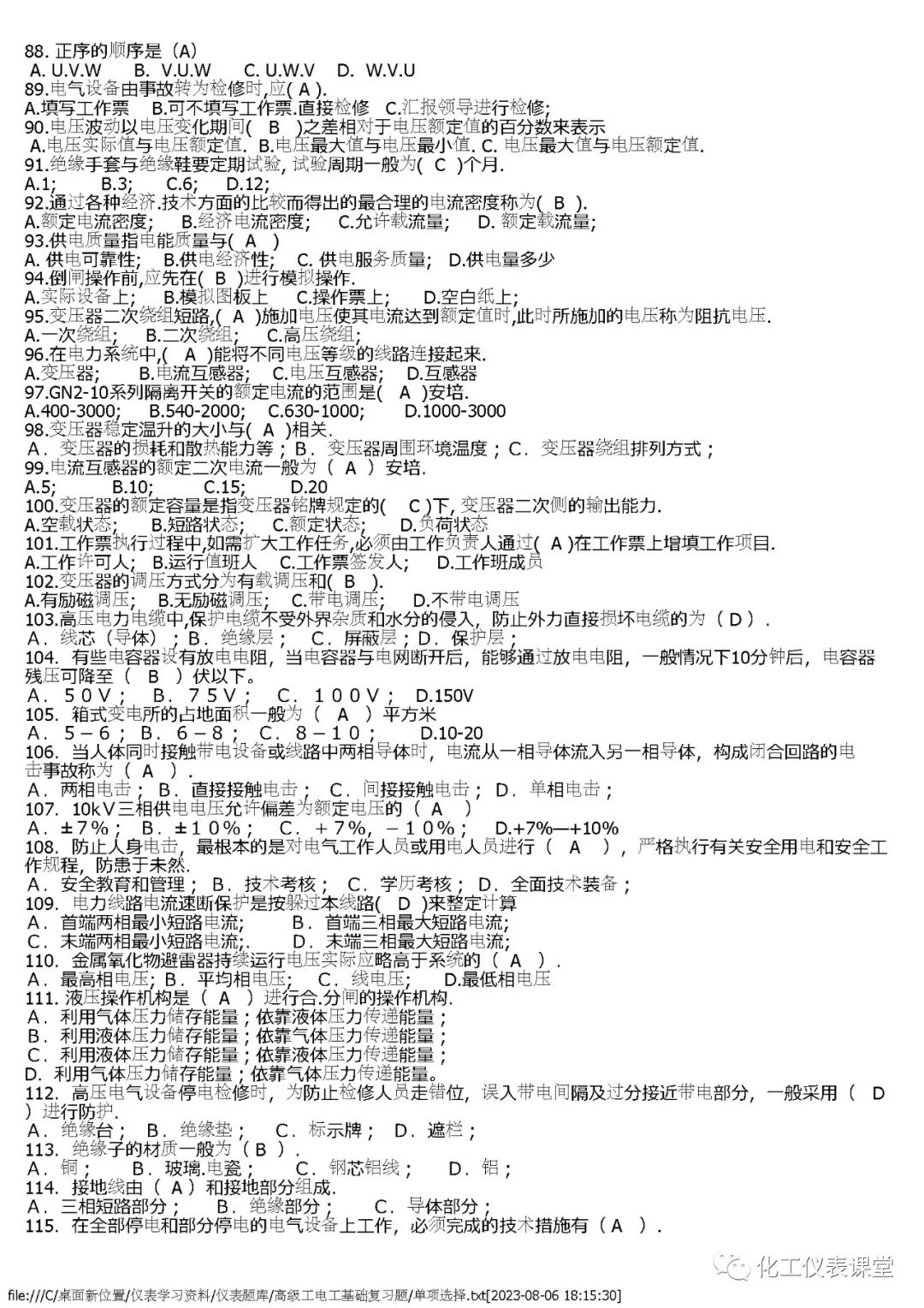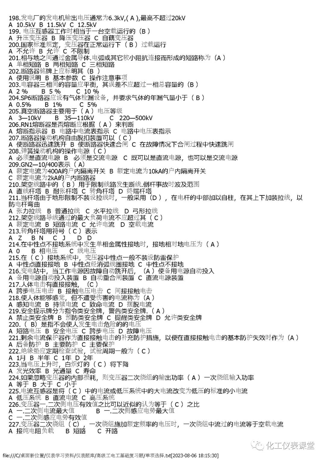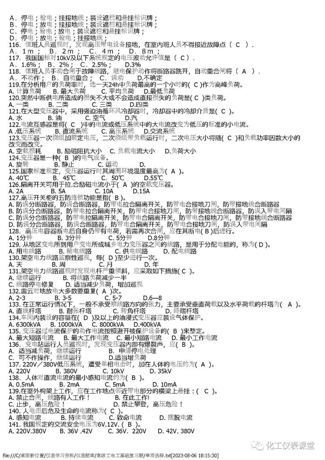 高级电工练习题(单选篇)