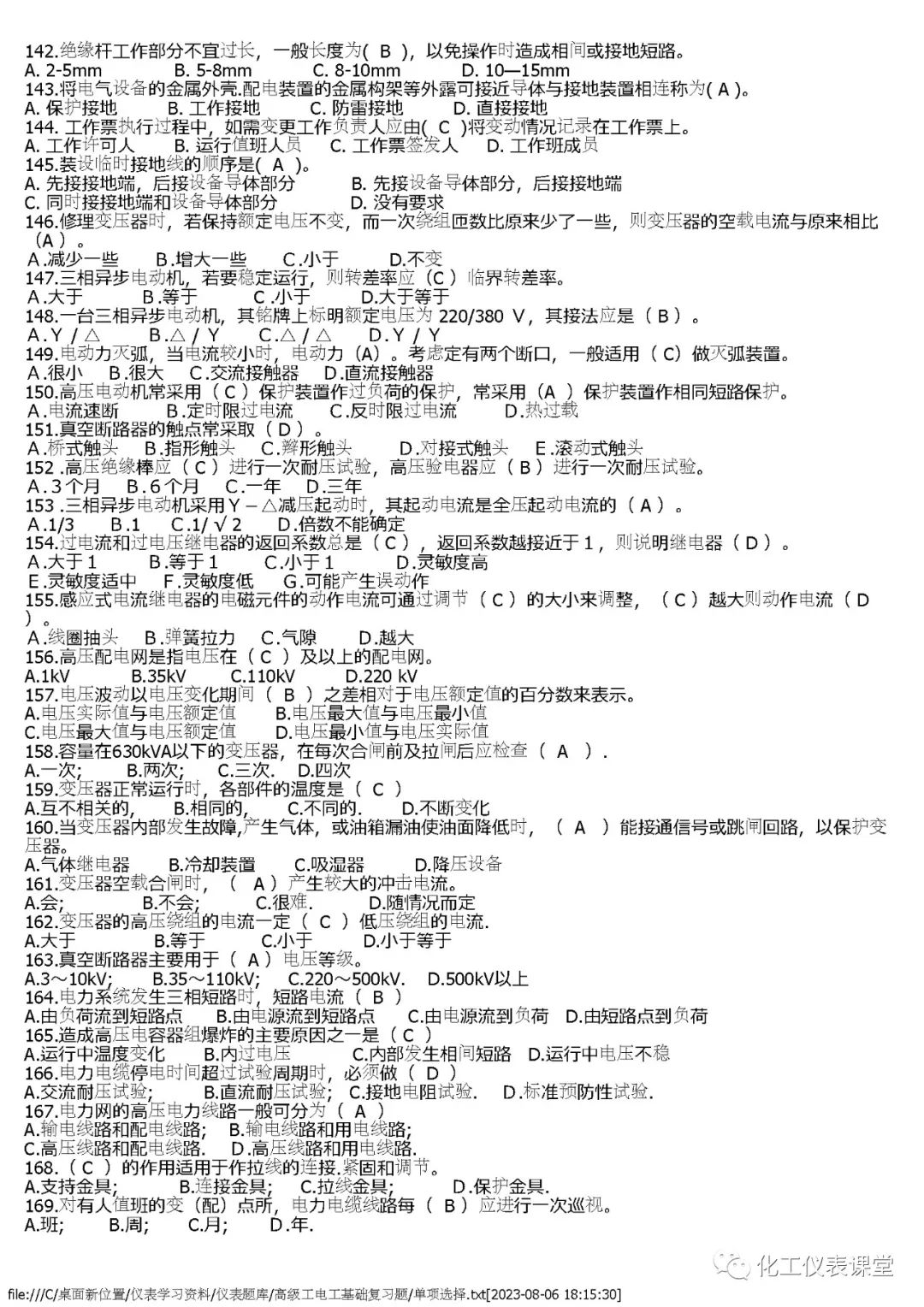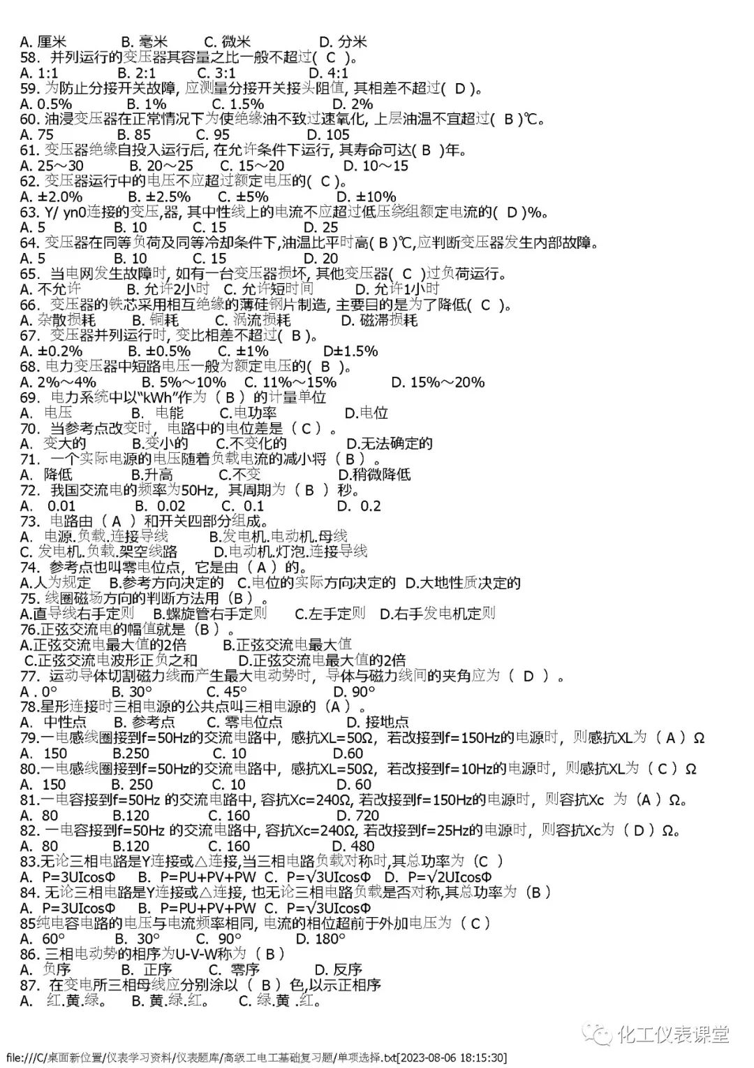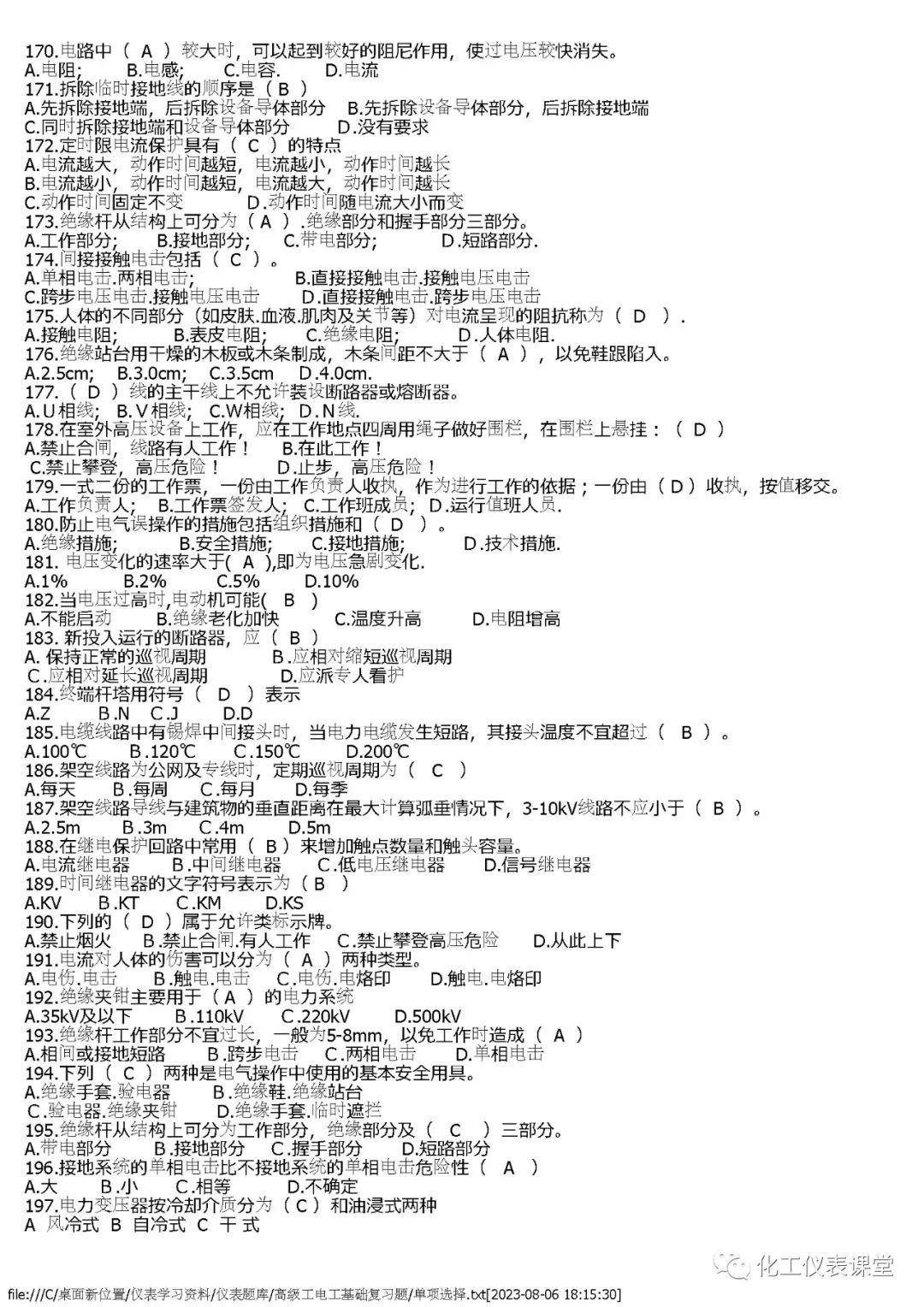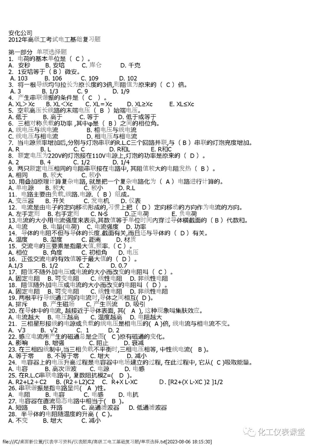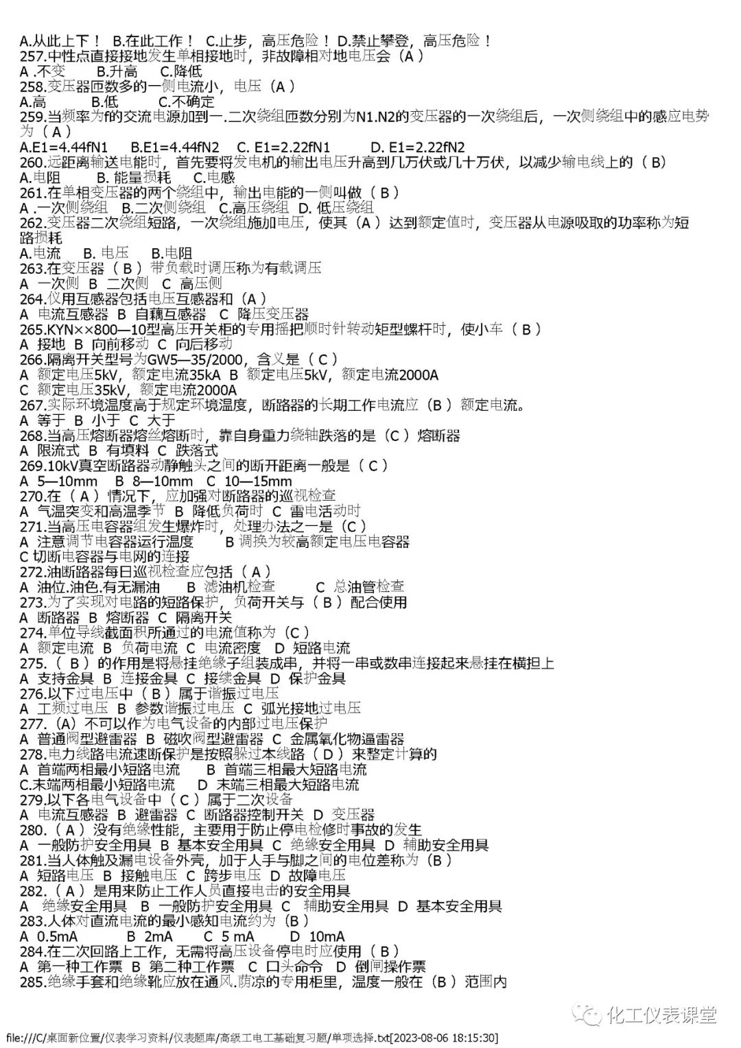 高级电工练习题(单选篇)