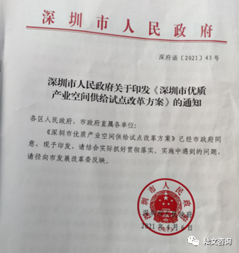 起因——为积极应对疫情影响,进一步降本减负,保障优质成长型企业、上市和拟上市企业的产业空间需求,深圳市人民政府2021年4月6日发布《深圳市优质产业空间供给试点改革方案》(深府函〔2021〕43号)。