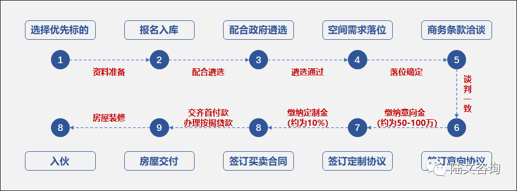 和市场化销售项目的区别在于需要主动报名入库,确定符合资质且通过政府遴选后才具备购买资质,后续购买流程则和其他市场化招商项目基本一致。