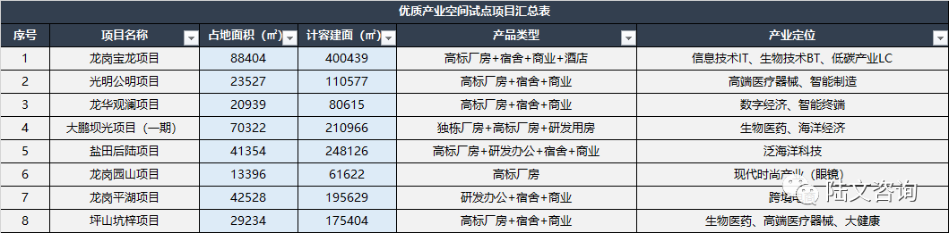 2.深圳优质产业空间项目列表