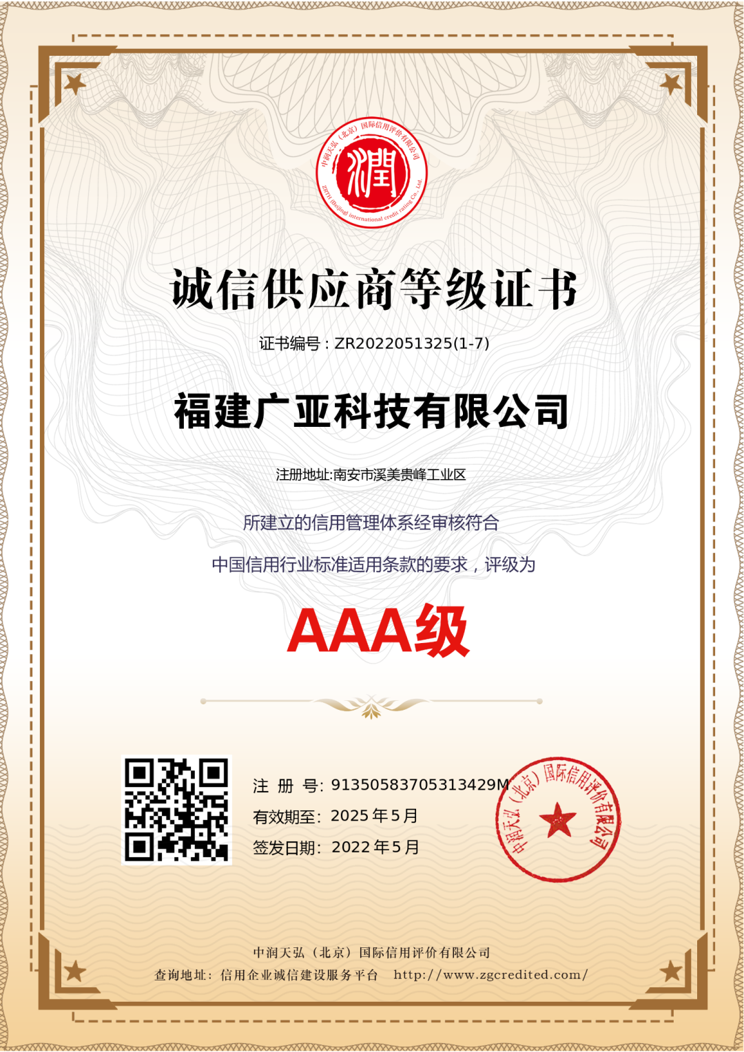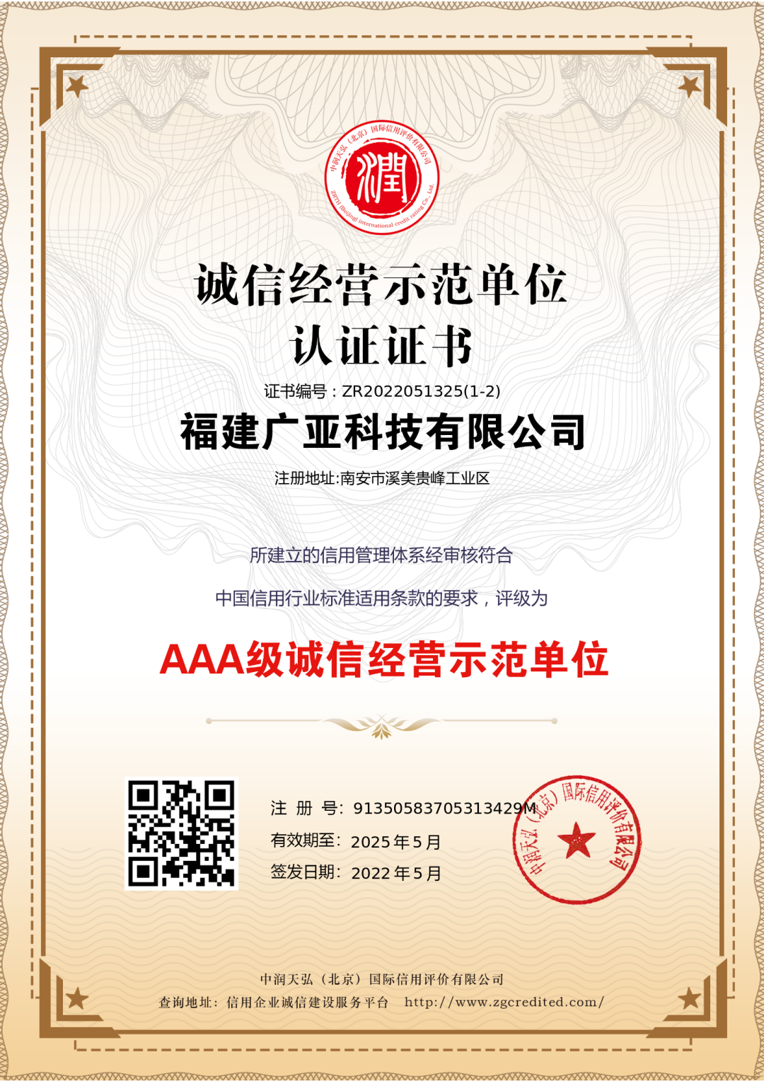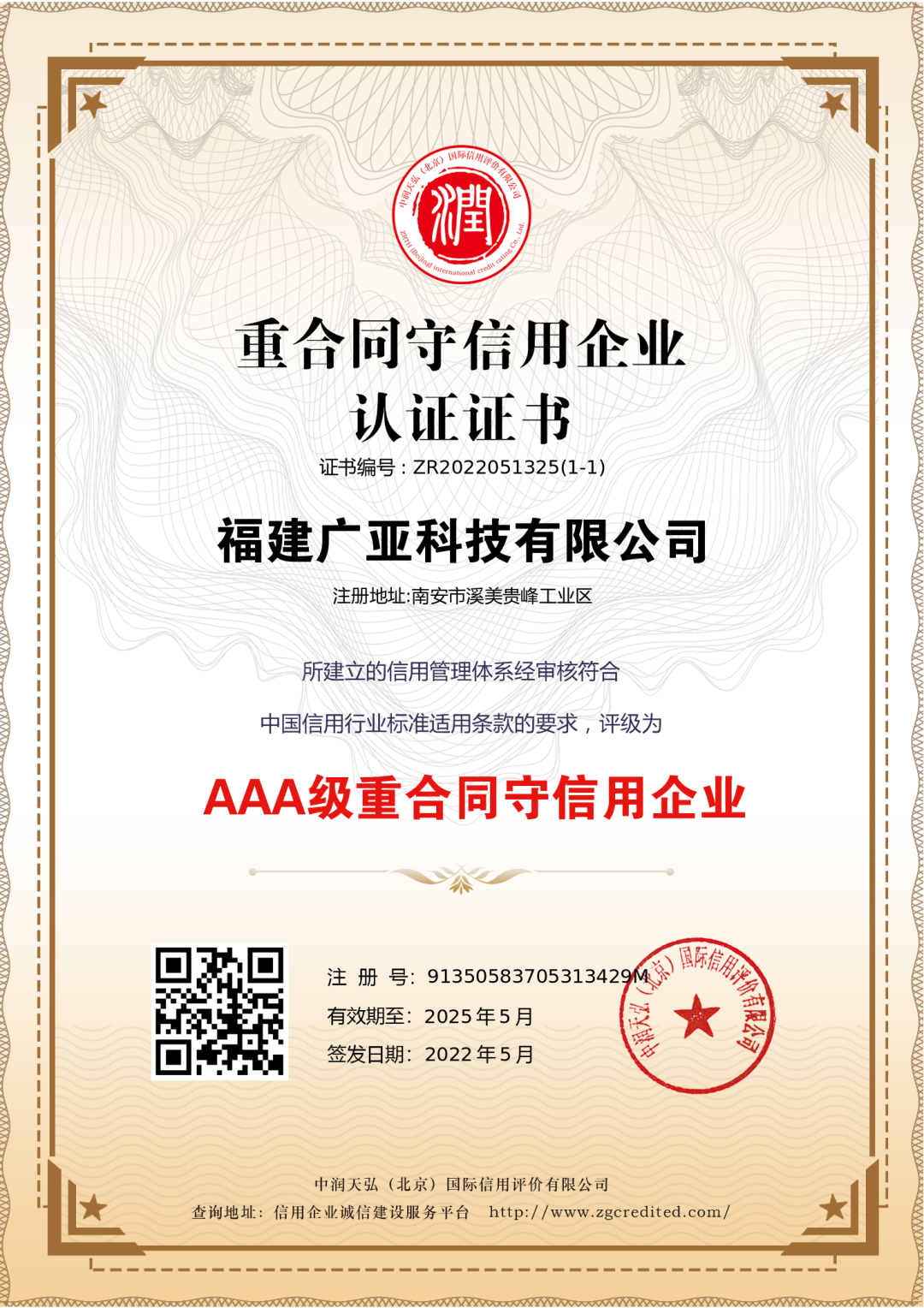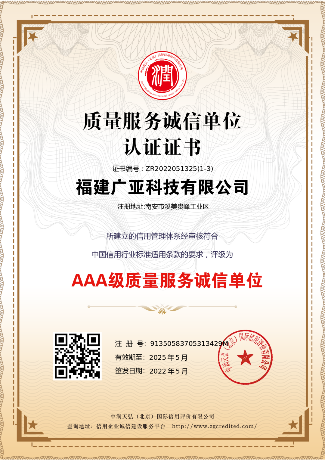 广亚公司本着“务实,真诚,开拓,创新,高效”的宗旨,坚持“质量第一,服务至上”的经营理念,以更好的质量,更完善的服务打造技术为先,品质卓越,服务更佳的知名企业。