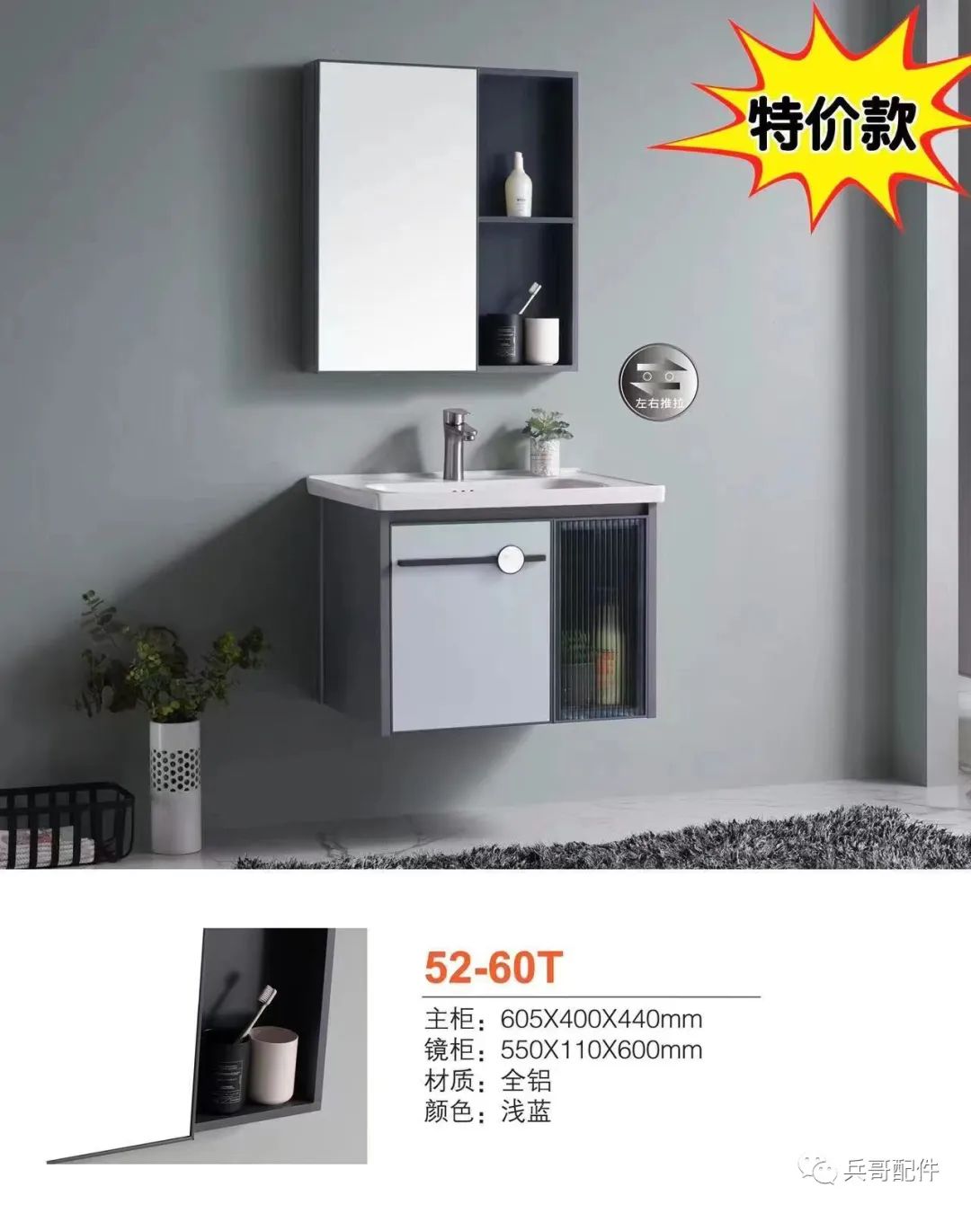 太空铝浴室柜 砂灰 -50 50*36 零售价:1290元