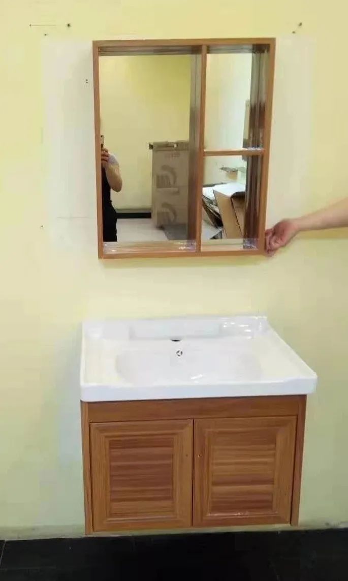 太空铝洗手盆 砂灰 推拉镜柜 60*40